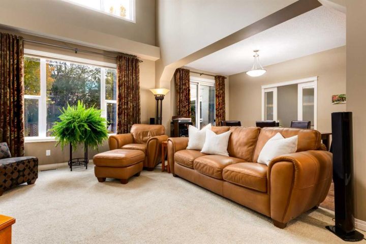 Set within the highly sought-after lower Valley Ridge community, this beautifully maintained residence combines timeless elegance with everyday comfort — just minutes from the Valley Ridge Golf Course, scenic pathways, and the Calgary West Farmers Market. From the moment you arrive, the home’s grand curb appeal and lush landscaping make a lasting impression. The pristine east-facing backyard is a private oasis featuring a sun-shaded patio with awning, privacy screens, outdoor speakers and a meticulously cared-for garden — the perfect retreat for morning coffee or evening gatherings. Inside, a spacious foyer opens into a bright, airy living room with soaring two-storey 18' ceilings and a gas fireplace. The open-concept layout flows seamlessly into a generous dining area and a well-appointed kitchen with abundant cabinetry, stainless steel appliances (including a new microwave- 2025), breakfast bar, and large walk-in pantry. A private office off the dining area provides an ideal work-from-home space, while the mudroom adds everyday convenience. The double attached garage is insulated, drywalled, finished with an epoxy floor and has hot and cold water taps. Upstairs, discover three large bedrooms, each with its own walk-in closet. Sunlight floods the home through the open-to-below design and large skylight, creating a warm, inviting ambiance. The primary suite is a true retreat, offering a spacious bedroom with vaulted ceilings, sunny south exposure, large walk-in closet, and a 5-piece ensuite with dual vanities, a soaker tub, and a separate shower. Completing the upper floor is an additional 4pc bathroom and large laundry room with built-ins and laundry closet. The fully developed lower level expands your living space with three distinct entertaining zones perfect for a theatre room, games area, and fitness space, plus a cozy corner fireplace and a charming library closet complete with floor-to-ceiling built-ins. Additional features include a water softener, new hot water tank (2024), fresh paint throughout the main floor (2025), new washer/dryer (2025) and newly resealed aggregate driveway (2025). Step outside your front door and enjoy the beauty of Valley Ridge’s extensive trail network — perfect for evening strolls, morning jogs, or peaceful walks along the river valley. Lovingly cared for by the same family for nearly two decades, this home has been the backdrop to countless cherished milestones. Now, it's ready for new memories to be made. Experience the unmatched combination of comfort, character, and location that makes Valley Ridge one of Calgary’s most desirable communities.