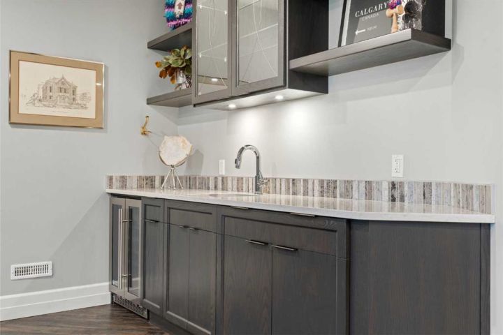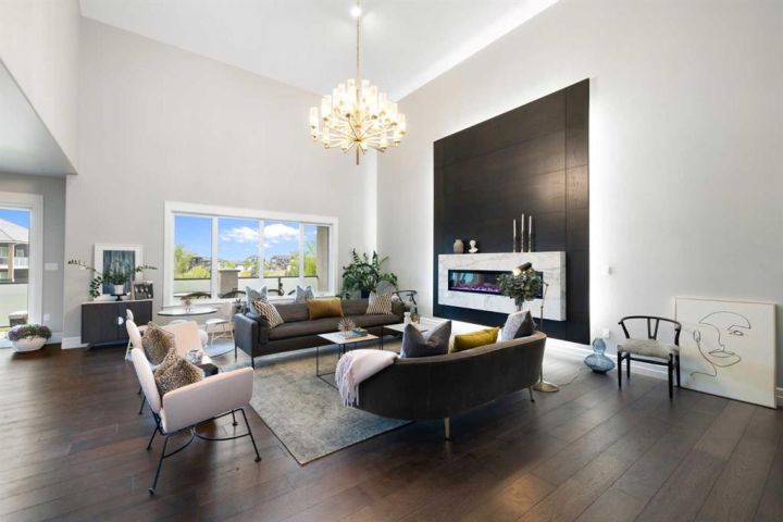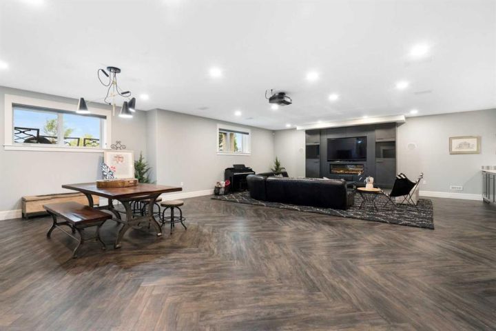 Modern European Architecture meets Southern Alberta Golf Resort Community! Presenting an extraordinary luxury residence that redefines sophistication.  A custom-designed estate by award winning Kenco Construction offering 6 very spacious bedrooms and 5.5 bathrooms, built on a massive DOUBLE LOT. This pristine, well-kept home seamlessly blends golf resort living, tranquility, functionality and urban convenience, perfect for growing families, entertaining friends, and hosting vacation stays for all your guests. As you approach the gorgeous path towards the front steps, the cascading sounds of water from an elegant fountain will make you pause and slow your breathing, immersing you in the serene beauty of the fully landscaped yard.  Upon entering the well lit foyer, you will be captivated by every room in this home.  To your right , through the glass door, is your sleek modern office, ideal for a work-from-home lifestyle, or perhaps a sanctuary to take a siesta, and a place to open up the presents during the holidays - yes, the Christmas tree with lights are included! The main floor bedroom with the ensuite is perfect for the in-laws who do not like stairs, and their own access to the deck. Whether you are an inspiring chef or want to hire one, enjoy the gorgeous kitchen that opens to the dining and living room. Be amazed with the kitchen island made of Arabescato Vagli marble, waterfall design, along with a fully out-fitted Butler's Pantry. You'll love the primary bedroom on the second level with a massive walk-in closet, private balcony and the amazing ensuite that features a separate shower and beautiful free-standing tub to relax and unwind. Have more guests that don't want to leave? Check out the huge family room on the upper level, with pocket sliding doors, which includes a comfortable contemporary sofa-bed.  Other notable features include designer lighting from Marcel Wanders, Restoration Hardware and Capital Lighting, gold brass finishes, top of the line Miele appliances, in-floor heating, in-floor central vac for the dust bunnies in the primary ensuite, herringbone tiles and floors throughout, steam shower bathroom, two separate laundry facilities with sinks, a movie projector and screen with built in speakers, your private exercise room, and the beautiful staircase that winds from top to bottom.  Over 23K was invested for the expansive drive-way and sidewalk to include exposed concrete aggregate.  The attached 4 car garage will hold all your tools and toys, and even a doggie bath rinsing station with a dog door for your furry friend.  Enjoy backyard gatherings, bbq's and watch the kids play next to the playground. Why build, when everything was thought out, designed and landscaped.  No detail has been spared here.  A truly unique, quality built home, ready for the next family to move in and enjoy.  Welcome to your forever home!