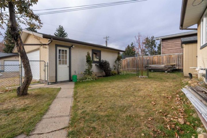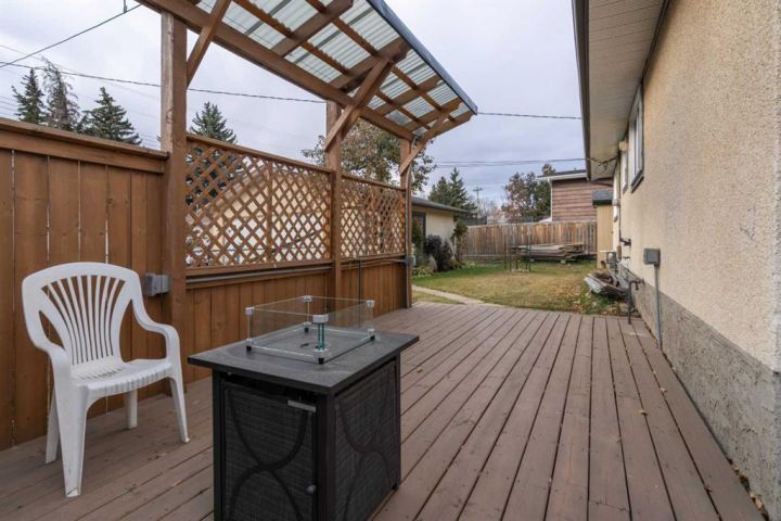 Welcome home to this charming 1,045 sq. ft. bungalow, ideally located close to west-end shopping and great schools—perfect for a young family or first-time homebuyer! This inviting home offers a bright and functional main floor featuring three bedrooms, a spacious living room, a welcoming dining area, and an updated kitchen with soft-closing white cabinetry. A fresh coat of paint in your own palette will make this home truly yours. The basement has been opened and is ready for your finishing touches—complete with a 3-piece bathroom, laundry, and storage area. Many major updates have already been taken care of, including a new furnace and hot water tank (2015), new shingles (2020), washer and dryer (2020), new doors and deadbolts (2020), garage doors & garage door opener (2020) with 2 controls, and a lovely deck added in 2021. You’ll also appreciate the new egress windows (2024 & 2025) and the convenient side entrance offering easy access to both the main floor and basement. Enjoy the outdoors in your fenced backyard featuring mature trees, a private deck area, and an 8' x 15' storage shed. The double detached garage provides plenty of space for parking or projects. With central vac, all-new windows, and so many recent updates, this home truly has it all—with just a small amount of sweat equity this home is everything you could wish for.
