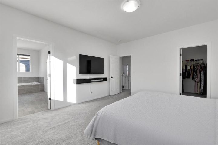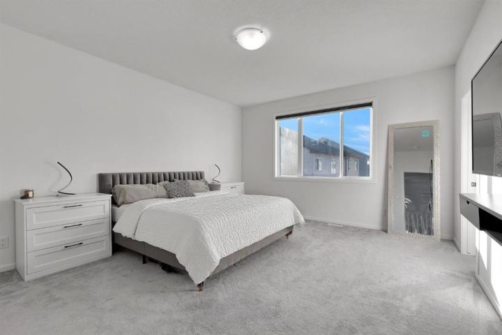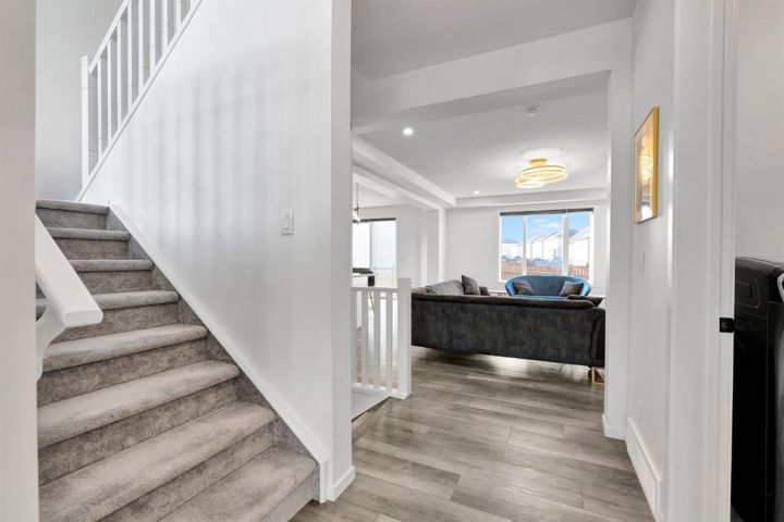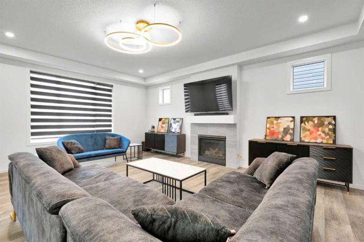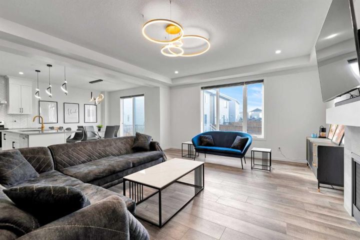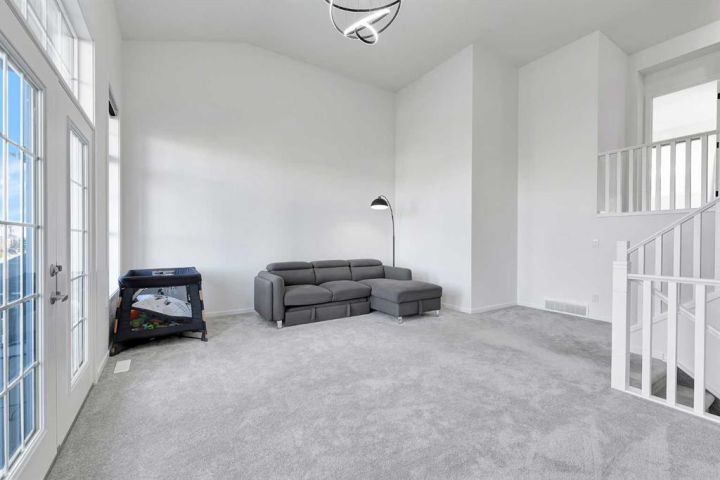 ***Open House Satuday 25 November 2pm to 4pm*** MODERN FAMILY HOME IN SOUGHT-AFTER SOUTHWINDS! BUILT IN 2021 | WEST-FACING BACKYARD | AIR-CONDITIONING | STEPS TO PARKS, SCHOOLS & SHOPPING Welcome to this MODERN DETACHED HOME offering 2,409 SQ.FT. of beautifully finished living space plus a 777 SQ.FT. unfinished basement, ready for your personal touch! Designed with today’s family in mind, this home combines style, comfort, and convenience in one of Airdrie’s most popular communities. Step inside and be greeted by a bright, open-concept main floor featuring 9FT CEILINGS and VINYL PLANK FLOORING. The stunning kitchen impresses with QUARTZ COUNTERTOPS, a HERRINGBONE TILE BACKSPLASH, BLACK STAINLESS STEEL SMART FRIDGE, WALK-IN PANTRY, and a large ISLAND WITH SEATING—perfect for casual dining. The spacious living room with TRAY CEILING centers around a TILED GAS FIREPLACE WITH A MODERN MANTEL, while the adjacent dining area features PATIO DOORS TO THE DECK -ideal for BBQs and A SUNNY WEST-FACING BACKYARD. Upstairs, the BONUS ROOM with 14FT VAULTED CEILINGS and FRENCH DOORS TO A PRIVATE BALCONY offers the perfect space for family movie nights or kids play area. The PRIMARY SUITE is a true retreat with a WALK-IN CLOSET and a SPA-INSPIRED ENSUITE featuring a SOAKER TUB, DOUBLE VANITY, and OVERSIZED SHOWER. Two additional spacious bedrooms, a full family bathroom, and a large linen closet complete the upper level. The UNFINISHED BASEMENT (insulated, with egress windows and bathroom rough-in) provides endless potential for future development. Additional highlights include CENTRAL AIR-CONDITIONING and an ATTACHED DOUBLE GARAGE. Located in the FAMILY-FRIENDLY COMMUNITY OF SOUTHWINDS, this home is within walking distance to PARKS, PATHWAYS, SHOPPING, AND TRANSIT. The PICKLEBALL COURTS & PUMP TRACK are just minutes away. And the NEW SOUTH WINDSONG K–9 SCHOOL is opening Fall 2027. With easy access to Calgary and only 10 minutes to Stoney Trail, this location truly has it all! Don’t miss your chance to own this MODERN, MOVE-IN READY HOME IN A PRIME LOCATION — book your showing today and see why this could be the smart move for you!
