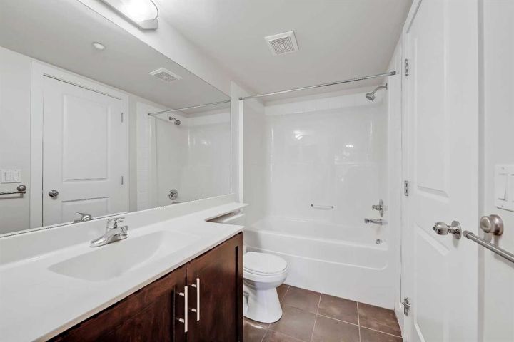 Experience the ease of lakeside living at the Bay Club in Chestermere, complete with 3 parking stalls, 1 titled underground and 2 surface, you’ll always have room for guests or an extra vehicle. The Bay Club offers a serene, resort-style community designed for those who value peace, comfort, and connection. This beautifully maintained 2-bed, 2-bath main-floor condo offers direct access to the landscaped greenspace and the lake’s waterfront pathways, creating a lifestyle that feels relaxed and practical. Inside, an open-concept layout is easily the best floorplan in the building, with zero wasted space, welcomes you with luxury vinyl plank and tiled flooring throughout — keeping the home cool in summer, warm in winter, and free of hidden carpet dust for those sensitive to allergies. The peninsula kitchen features sleek granite counters, a tiled backsplash, updated stainless steel appliances, newer fridge, and a raised breakfast bar that flows effortlessly into the spacious dining and living areas. Natural light fills the space through large patio doors, leading to a covered patio overlooking manicured gardens, the gazebo, and the lake, complete with a built-in gas line for outdoor dining or evening relaxation. Each bedroom enjoys its own private corner of the home, offering the rare benefit of two full primary suites. Both feature walk-through closets, ceiling fans, and ensuite bathrooms — one with a stand-up shower for assisted access, if needed and the other with a tub/shower combo and dual access for guests or small children. Additional highlights include updated paint, an in-suite laundry closet with full-size stacked washer/dryer, and plenty of in-unit storage. The Bay Club is a quiet, very well-maintained 3-level building — smaller than most in the area — resulting in a peaceful environment and less wear on shared spaces. Amenities include a fitness centre, 2 inviting common rooms, and a secure lobby with internal mail and package delivery. And you can actually walk (even in the winter!) to Chestermere Lake and nearby shopping and restaurants, because you’re so close, without shopping centres within eyesight. This move-in-ready home offers a rare chance to enjoy the calm and connection of true lakeside living. Don’t miss this opportunity. Schedule your private showing today!