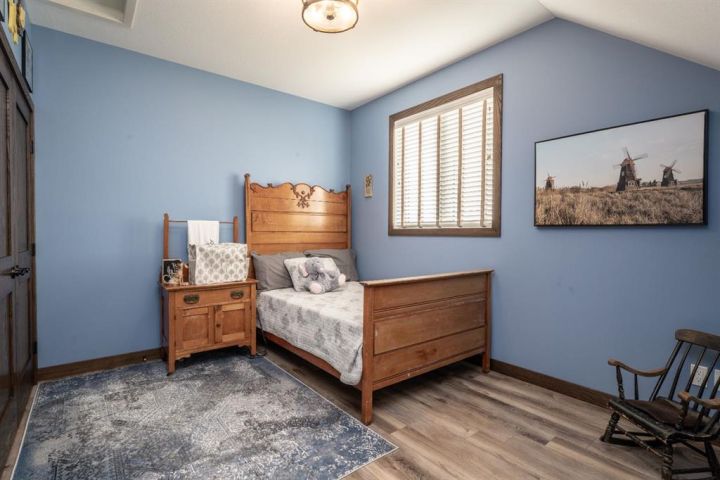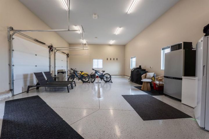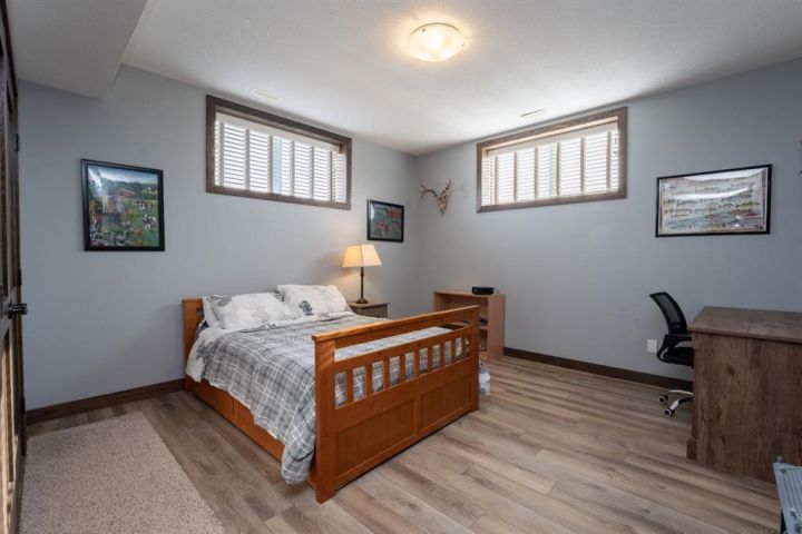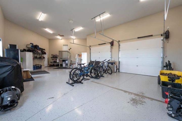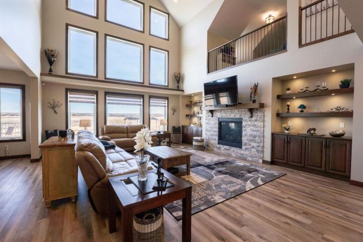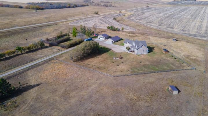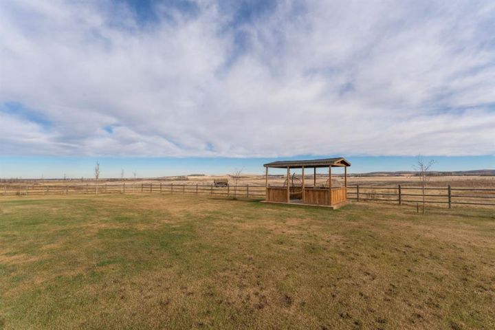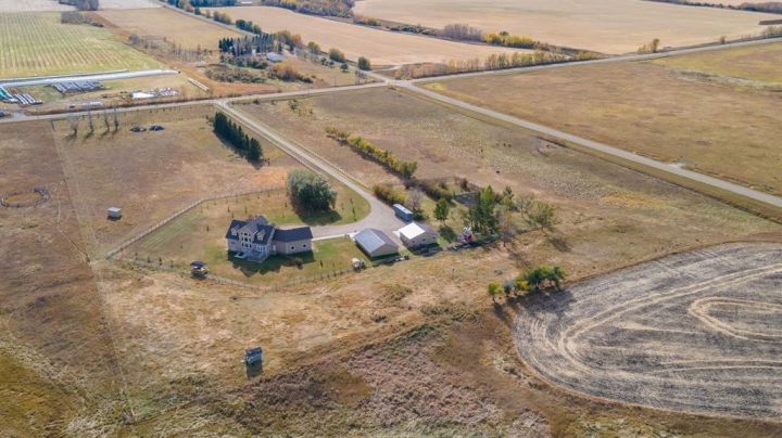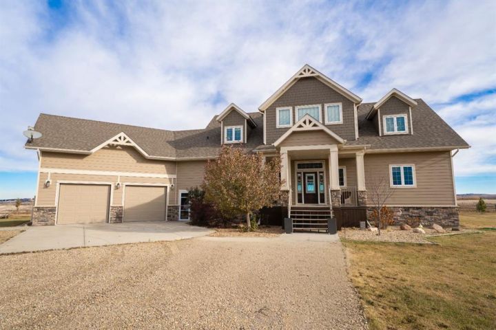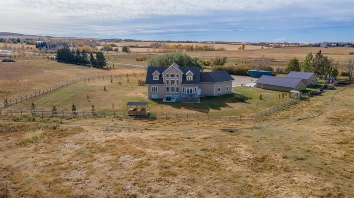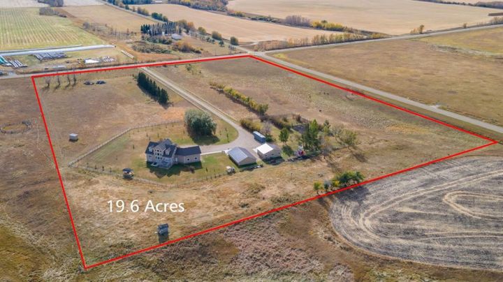 Welcome to your private countryside estate! Offering 19.6 acres with gorgeous views of the Alberta prairies and just 8 minutes from Red Deer, this 4662 sq ft custom home was masterfully built for those who value craftsmanship, comfort, and space to roam. The property is fully fenced with approximately 15.6 acres of pasture land, and 4 acres of beautifully landscaped yard space on the home site. Outside you'll find a 28x36' heated shop with epoxy floors, as well as a 49x35' quonset with concrete floor, and both buildings have newer overhead doors as well as all new tin siding and roofs. The stunning custom 2 storey home offers space for a large family with 5 bedrooms, 4 bathrooms, hard floors throughout (no carpet), 9' ceilings, and a stunning wide open living space that you'll love to entertain in. The living room is a show piece with floor to ceiling windows that span up to the 2nd floor, a gas fireplace, and beautiful built in cabinetry and lighted shelving. This space is open to the kitchen which features timeless raised maple cabinetry, quartz counter tops, a large island, corner pantry, and stainless steel appliances including a gas stove. The large dining space opens up to the back deck through double garden doors, and you'll love the prairie views through the abundance of windows throughout the space. The large primary bedroom is located on the main floor and enjoys a huge walk in closet and private 5 pce ensuite with dual vanities, a large soaker tub, and custom tiled shower. The main floor is completed with a beautiful laundry room with custom cabinetry, folding area, and a sink, and a separate 2 pce powder room. Upstairs you'll find two large kids rooms that share a 4 pce bath and a bonus room/loft area perfect for a kids playroom or office space. The basement enjoys cozy in-floor heat throughout and has a huge family and rec room area with surround sound and projector wiring, large gym space with tray ceilings, and two huge bedrooms that share a 4 pce bath. The massive attached garage is heated with in-floor heat and offers a ton of storage space as well as parking for large vehicles. Other features in this home include an ICF foundation, triple pane windows, powered gate at the driveway, and there are 2 wells on the property. This property shines with pride of ownership throughout and has been meticulously cared for by the current owners. This home is an absolute pleasure to show.