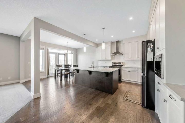 Welcome to Panatella Estates, where elegance meets perfection! This EXECUTIVE 4-BEDROOM walk-out with a striking STUCCO EXTERIOR, backs directly onto the ravine and is presented in IMMACULATE SHOW-HOME CONDITION - a home so pristine it feels more like a curated gallery than a home. with a striking stucco exteriorBeautifully crafted and maintained with premium finishes throughout, this home also features a new roof, gutters, and furnace (2025) for complete turn-key peace of mind. Step inside to soaring 9’ ceilings, gleaming engineered hardwood, and a main-floor office/den perfectly suited for working professionals or creative minds. The open-concept design flows seamlessly through a sun-filled living area with a designer fireplace and into a chef-inspired kitchen featuring custom white cabinetry, quartz countertops, upgraded stainless-steel appliances, a striking two-tone island, walk-through pantry, and a gas rough-in for those who prefer a gas range. From the dining area, step onto your sun-drenched dura-deck, thoughtfully equipped with a BBQ gas line for effortless entertaining. Overlooking breathtaking ravine scenery, this tranquil outdoor space extends your living area into nature itself — where morning coffee, golden sunsets, and peaceful evenings transform everyday moments into quiet luxury. Ascend to the upper level where a magnificent vaulted bonus room awaits — the kind of space that draws everyone together. Whether it’s movie night with the family, kids laughing over board games, or quiet moments with a book and a view, this room captures the essence of home. The primary suite is a true retreat — a spa-inspired sanctuary featuring dual vanities, a 10 mm glass shower, and separate his-and-hers walk-in closets for effortless organization. Three additional upper bedrooms are thoughtfully designed with generous proportions, offering plenty of space for family, guests, or a personalized home studio. Convenient upper-floor laundry completes this level, adding everyday ease to its exceptional comfort. The expansive walk-out basement with 9’ ceilings and plumbing rough-ins offers endless possibilities — whether you envision a private suite, home theatre, or fitness studio, it’s a blank canvas ready for your personal touch. Outside, the property shines with meticulous low maintenance landscaping, and an OVERSIZED garage for added functionality. Backing directly onto the peaceful ravine and walking paths, this home offers the perfect blend of natural beauty and everyday convenience — where scenic morning walks and tranquil evening views become part of your routine. Ideally situated just minutes from schools, parks, the community lake, shopping, restaurants, and major roadways, this location captures the very best of Panorama Hills living. Let's make a deal: Seller Says Buy This HOUSE AND WE WILL BUY YOURS (Terms and conditions apply).