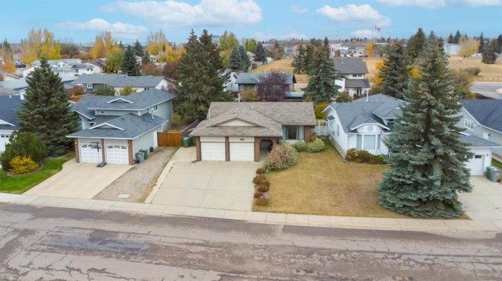 Welcome to 5714 39 Street, nestled in the Southridge neighbourhood of Lloydminster, AB. This fully developed 5-bedroom home offers both functionality and comfort. The primary bedroom features a walk-in closet and a private 3-piece en-suite, while the main bath boasts a relaxing jetted tub. Hardwood floors run throughout the main level, adding warmth and style. The kitchen is equipped with a large walk-in pantry and ample counter space, making it ideal for family living. The basement features two bedrooms, a large family room, and additional storage space. The heated double-attached garage and RV parking make this home perfect for those needing extra space for vehicles and recreational toys. Enjoy the cozy backyard, complete with a fire pit area, mature landscaping, and a shed for additional storage. Located within walking distance to schools and parks, this home checks all the boxes for growing families. 3D Virtual Tour Available!