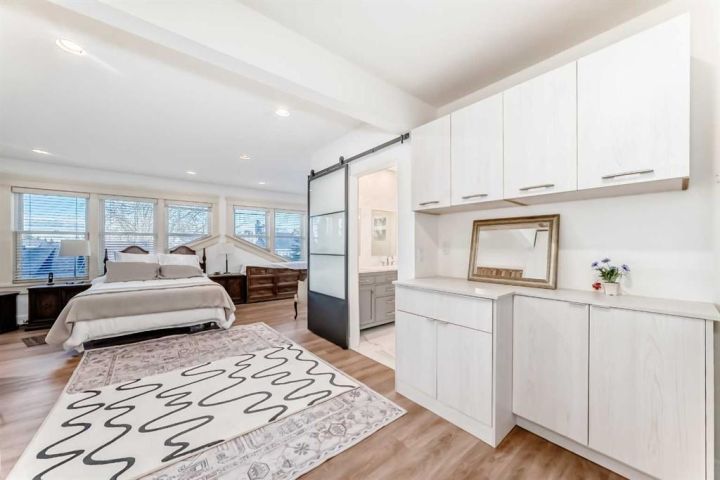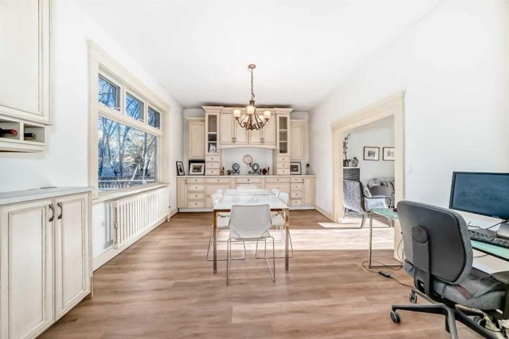 Facing a tranquil park in one of Calgary’s most treasured inner-city communities, this red-brick 5-bedroom, 4,289 sq.ft. (RMS+Finished Area) Scarboro estate embodies a rare harmony of heritage elegance and modern sophistication. The iconic red-brick façade and manicured gardens exude timeless charm. Inside, the Downsview Gourmet Farmhouse Kitchen is a true architectural masterpiece — surrounded by three-sided window walls, vaulted ceilings with rustic beams, and a sculptural curved island. Sub-Zero and Thermador appliances, dual sinks, and a skylit outdoor kitchen and patio make this the heart of the home. Between 2001 and 2022, thoughtful renovations harmoniously merged classic character with modern comfort. The formal dining room overlooks lush gardens, while the living room and paneled office, each with their own fireplaces, invite quiet moments of reflection. Upstairs, the serene primary suite features a spa-inspired ensuite, walk-in closet, and Juliet balcony overlooking downtown. A sunlit yoga room facing the park completes the tranquil experience. The lower level features a recreation room with a wet bar, a gym, a fifth bedroom, and a laundry room equipped with a cast-iron sink and a chute. A 2017 steam boiler system, two furnaces, and an oversized double garage reflect true craftsmanship. Set on a secluded, park-facing lot near top-ranked schools, downtown, and the LRT, this is more than a home — it’s a lifestyle of grace, light, enduring harmony, and true legacy!
