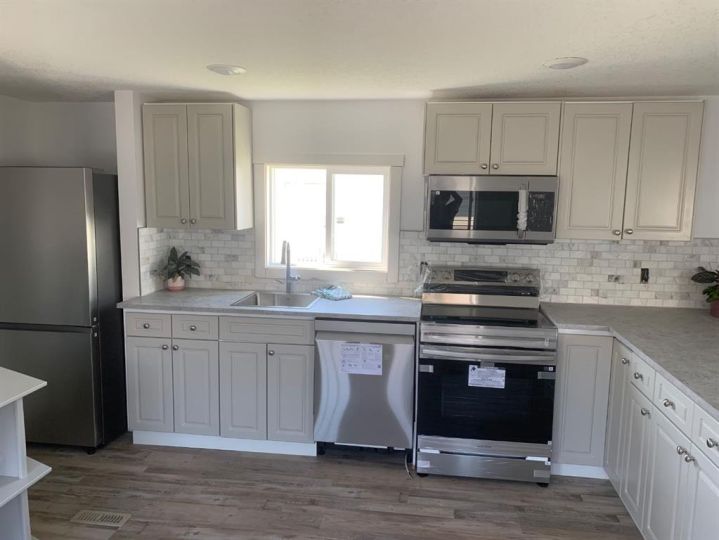 BETTER THAN BRAND NEW !!! THIS MOBILE WAS STRIPPED DOWN AND TOTALLY REBUILT. NEW WIRING, NEW PLUMBING, NEW 3/4" PLYWOOD SUBFLOOR, NEW ROOF, SOME NEW SIDING, NEW DRYWALL WALLS AND CEILINGS WITH TEXTURE, NEW 5' WALK IN SHOWER WITH CUSTOM BENCH SEAT, BEAUTIFUL 36” WOOD VANITY WITH TWO DRAWERS, NEW TOILET, STORAGE SHELF IN BATHROOM. THIS FLOORPLAN FEATURES TWO BEDROOMS AND LIVING ROOM AREAS. PERFECT FOR THE RETIRED COUPLE OR FIRST TIME BUYER WHO WANTS A ROOMMATE. THE ROOMS ARE LOCATED AT EITHER END OF THE MOBILE. THE BATHROOM IS CENTRALLY LOCATED AND LAUNDRY TOWER IS LOCATED JUST OUTSIDE OF THE BATHROOM. THE MINUTE YOU WALK INTO THIS BRAND NEW REBUILT MOBILE YOU WILL BE GREETED BY A LARGE SPACIOUS KITCHEN WITH A MASSIVE EATING BAR. THERE IS A CUSTOM BUILT IN SHELF AND LARGE PANTRY HIDDEN FROM VIEW. BEAUTIFUL VINYL PLANK INSTALLED THROUGH OUT. BRAND NEW WINDOWS, NEW DOORS, NEW ELECTRICAL PANEL, NEW POT LIGHTS, NEW ELECTRICAL FIXTURES AND NEW SMOKE DETECTORS. YOU WON'T WANT TO MISS THIS BEAUTY! SHE'S BUILT BETTER THAN NEW ! LOCATED BEHIND SOUTHSIDE SAFEWAY AND STATE & MAIN. LOTS OF SHOPPING AROUND THE CORNER. PARK AND BIKE TRAILS CLOSE BY. SELLING REALTOR HAS INTEREST IN MOBILE.