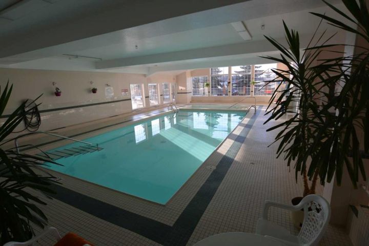 One of Red Deer's favorite Medican adult building~ This building is known for the pride its owners have of their building and community. Amenities include an indoor pool, sauna, hot tub, exercise room, billiards tables, social room, library, craft room, wood working shop, car wash, and its social gatherings by the front entry fireplace several times a day. Condo fees include all utilities, cable TV, internet, and a landline phone. This spacious open concept unit has a generous sized kitchen, gas fireplace as a focal point, sought after sunroom, large primary bedroom that will hold a lot of furniture and a second den with closet (currently being used as a guest bedroom but does not have a window.) There is also a convenient 2nd 2 piece bathroom, and a separate laundry room. This unit faces West with magnificent sunsets and overlooks the courtyard below, and is in close proximity to the elevator. The parking stall and storage unit is also very close to the elevator.