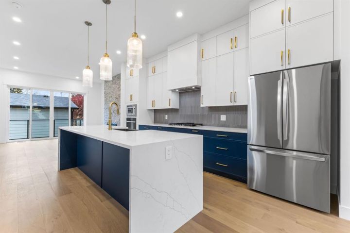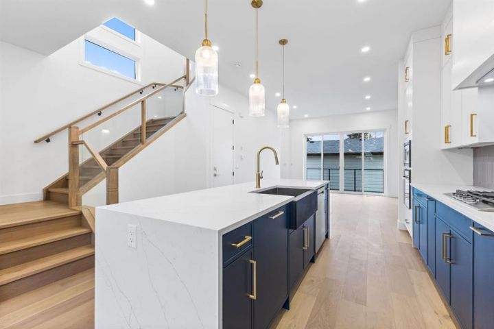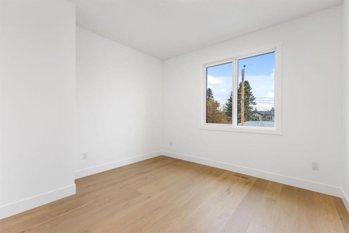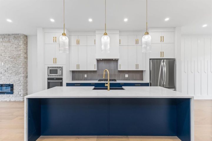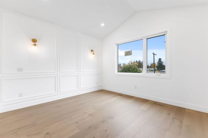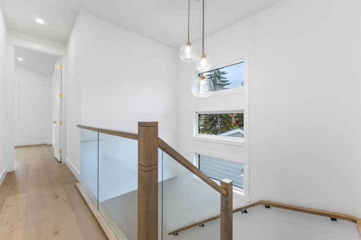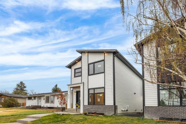 Welcome to this brand-new, 3 bedroom residence perfectly situated in the mature community of Rosscarrock. Designed for modern living and crafted with exceptional attention to detail, this contemporary two-storey home offers over 1900 sq ft of beautifully developed space, plus a legal self-contained one-bedroom basement suite—ideal for guests, or as a potential mortgage helper. The main level showcases an open-concept design enhanced by wide-plank hardwood floors, high ceilings, and expansive windows that flood the space with natural light. The inviting living room features a striking floor to ceiling fireplace and built-in shelving, creating a warm focal point for gatherings. The adjacent dining area easily accommodates family meals or formal entertaining. At the heart of the home, the chef-inspired kitchen impresses with full-height cabinetry, quartz countertops, an oversized island with breakfast bar and excellent appliance package. Thoughtful details such as recessed lighting, designer chandelier, a functional mudroom with custom built-ins and 2 piece powder room elevate the space. Upstairs, the vaulted-ceiling primary suite is a private retreat, complete with a spacious walk-in closet fitted with custom organizers and a luxurious 5-piece ensuite featuring double sinks, a quartz-topped vanity, freestanding soaking tub, and separate glass shower. Two additional bedrooms, a 4-piece bath, and a convenient laundry room with sink complete this level. The fully developed lower level has been designed as a private, self-contained legal one-bedroom suite, complete with its own kitchen, living area, full bathroom, and laundry facilities. Large windows, recessed lighting, and quality finishes ensure the suite feels bright and inviting—ideal for extended family, guests, or rental use. Outside, enjoy a private, landscaped yard with a rear deck, fencing, and a double detached garage. The home’s exterior blends timeless brick and composite siding with modern lines and a welcoming south-facing front exposure. Situated on a quiet street within walking distance to parks, playgrounds & schools and close to Shaganappi Point Golf Course, shopping, scenic Edworthy Park and public transit, this property offers the perfect balance of style, flexibility, and convenience. Newly built in 2025, this outstanding Rosscarrock residence delivers premium craftsmanship, functional design, and exceptional versatility—ideal for today’s discerning buyer seeking luxury living with the added benefit of a legal self-contained suite.