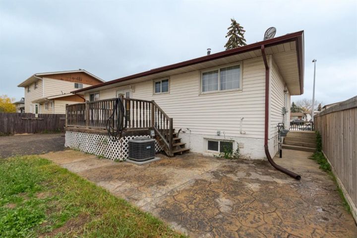 Welcome to 114 Highfield Street, a charming bungalow in the heart of Thickwood offering exceptional value and endless potential. With a new furnace and hot water tank (2024), a spacious 24x26 detached garage, and an ideal location close to schools, parks, and everyday conveniences, this home is a smart choice for first-time buyers or investors seeking a well-priced property in a mature, family-friendly neighbourhood. The home offers great curb appeal with a welcoming front deck, a paved driveway that can accommodate up to four vehicles or store your camper or recreational toys, and a 24x26 detached garage at the back—ideal for those needing extra storage, a workshop, or a secure space for toys and equipment. The backyard features a stamped concrete patio, a back deck, and an additional side deck, creating a comfortable outdoor space to enjoy throughout the warmer months. Inside, the main level offers a bright and functional layout with open concept living, an eat-in kitchen with plenty of cupboard and counter space, and a wood-burning fireplace that adds warmth and character to the living room. The main floor hosts three bedrooms and a full bathroom, with the middle bedroom offering direct access to the backyard—perfect for families, pet owners, or those seeking a convenient home office setup. The lower level features brand new carpet installed in 2025, a den, a three-piece bathroom located in the laundry area, and a pool table included with the home—ready for entertaining or relaxing nights in. Additional highlights include central air conditioning, a new side door installed in 2025, and professional cleaning just completed so you can move in or start your updates with ease. With its solid structure, large garage, and unbeatable price point, this home represents an incredible opportunity to build equity in one of Fort McMurray’s most convenient and desirable communities. Schedule your private showing today and discover the potential waiting at 114 Highfield Street.