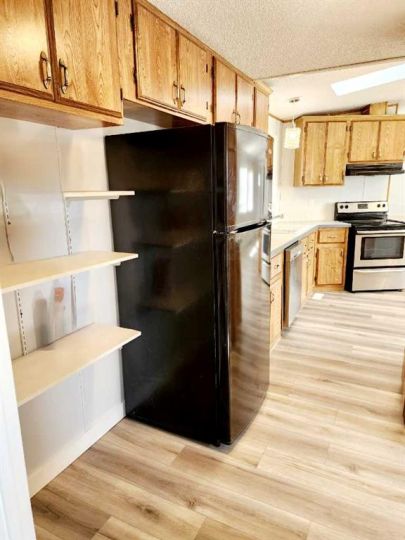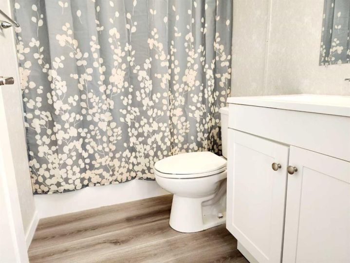 Welcome home to this beautifully renovated mobile home in a quiet and clean park in Blackfalds. This is a great starter home or for anyone looking to downsize. With many previous renovations such as windows, doors, floors, bathrooms, plumbing, light fixtures, furnace, hot water tank, skylight, blocking, decking, siding, and skirting. And additionally added extra insulation around the skirting, barn door on the ensuite bathroom, new paint and a few great gardens with a 1000 gallon water tank too catch rain water to water the gardens. The very large yard and the two decks make for lots of room for entertaining!!