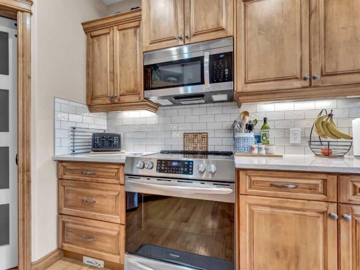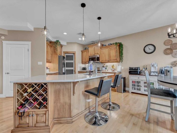 Step into exceptional comfort and thoughtful design in this beautifully maintained, custom Kenco-built home featuring rich hardwood floors, 9’ ceilings, and 3 zone heating. The open-concept main floor showcases a recently renovated kitchen with gorgeous stained maple cabinets, premium quartz countertops, modern backsplash, reverse osmosis water filtration, stainless steel appliances, and a large island—all just steps from the spacious dining area and cozy living room with a gas fireplace. Perfect for entertaining or relaxing with family. A bright main-floor office, powder room, and a convenient laundry room complete this level. Upstairs, you’ll find a versatile bonus room, three generous bedrooms, and two beautifully updated bathrooms, including a primary suite featuring a huge walk-in closet and a spa-like ensuite fully remodeled in 2023. The ensuite includes a standalone tub, tiled shower, new vanity, and modern vinyl flooring. A standout feature is the laundry chute from the ensuite directly to the laundry room—one of the seller’s personal favorites! The fully developed basement adds even more space and function with a fourth bedroom, another full bathroom with heated floors and a large walk-in shower, and a spacious family room perfect for movie nights in your home theatre complete with built-in speakers and a cozy three-way gas fireplace. The wet bar area features matching cabinetry and ample storage—ideal for entertaining, an in-law suite, or a private space for a teenager or young adult. Step outside to enjoy your fully fenced and landscaped backyard, featuring underground sprinklers, a low-maintenance Trex composite deck, gas BBQ hookup, and a cement pad pre-wired for a hot tub. A custom ¾” water line is perfect for filling a pool or flooding a backyard ice rink in winter. For the energy-conscious buyer, this home comes equipped with a large solar panel system (13.12 kW, 32 panels) installed in 2023 and currently producing an average of $200/month in energy savings. Best of all, the system will be fully paid off upon sale—giving you years of future savings. Completed by a spacious heated double attached garage, this home combines quality construction, energy efficiency, and thoughtful upgrades—all in a family-friendly layout. There’s truly nothing left to do but move in and enjoy. Call your favorite agent and book your showing today!