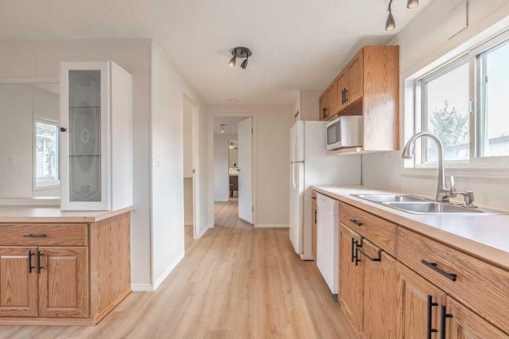 Near the gentle ripples of Lake Stafford, there stands a home that glows with kindness and quiet confidence. It isn’t grand or showy, but it has heart — the kind of heart that welcomes sunlight, laughter, and the scent of something warm baking in the oven while someone hums along to their favorite tune. Built in 1994 and lovingly refreshed for a new chapter, this three-bedroom, two-bath home holds 1216 square feet of comfort and light. Inside, the brand-new vinyl plank floors shine in a sun-kissed blonde tone, stretching through every room like a golden thread tying the story together. Fresh paint and crisp new baseboards give every wall a sense of renewal. In the kitchen, warm oak cabinets line the walls, offering space for every pot, pan, and recipe card. An eat-up bar invites company to linger while something delicious simmers on the stove, and newly updated handles add just the right touch of a new era. A built-in hutch in the dining room serves as part display and part heirloom keeper, holding the treasures of yesterday and the promises of tomorrow. A glass divider between the dining room and living room holds the stillness of a moment, clear and quiet, allowing the beauty of the rooms to reflect through one another. The living room rises tall with a vaulted ceiling and a window that seems to smile upon the room. It feels like the kind of place where a cozy chair, a warm blanket, and a quiet sigh can turn an ordinary afternoon into something special. Just beyond the kitchen, the primary suite awaits — a graceful suite for the understated, undiscovered princess. It is designed for rest and a touch of royalty, with an updated ensuite that feels modern and serene. One full wall is devoted to built-in storage, ready to cradle gowns, sweaters, and everyday favorites, while the walk-in closet offers even more space for treasures waiting to be worn. Opposite the primary suite, near the main bathroom, two additional bedrooms bring balance to the layout, each bright, clean, and ready for their own little adventures. Outside, a soft pink exterior with green shutters gives the home a gentle personality. The fenced yard provides privacy and space for pets or potted flowers, and a shed stands quietly by, ready to hold garden tools and a few secrets of its own. With the right mix of imagination and story, who’s to say it’s only a shed? Perhaps it’s the doorway to somewhere else entirely. For the sweetheart who cherishes the small details and quiet comforts, this is the home that’s been waiting — a place for someone who may not wear a crown yet, but has always carried the heart of royalty. Updates and Features: New vinyl plank flooring (2025); fresh paint and new baseboards (2025); dishwasher (2025); microwave (2019); furnace (2017); updated ensuite (approx. 2016).
