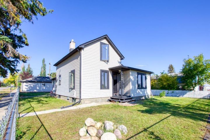 EXCELLENT OPPORTUNITY to own a BEAUTIFUL CHARACTER HOME on a HUGE CORNER LOT (75 x 150) in Acme! Enjoy SMALL-TOWN VIBES while still being conveniently close to the city. This FRESHLY PAINTED home is filled with NATURAL LIGHT from the abundance of windows. The main floor offers a BRIGHT and SPACIOUS kitchen with an eating area, a LARGE living room, two bedrooms, and a full bathroom. Upstairs, you’ll find the PRIMARY SUITE complete with its own ENSUITE. Recent updates include a NEW furnace and HOT WATER ON DEMAND (2025), plus a NEWER ROOF for added peace of mind. Sitting on three subdivided lots (on paper), this property offers incredible potential. Zoned residential, it provides the flexibility to build or place a modular home on Lot 3 while still maintaining easy access to the existing sheds and garage. With ample space from eave to eave, a fantastic opportunity for anyone with a vision to expand. The MASSIVE BACKYARD is perfect for relaxing or entertaining, and the OVERSIZED DOUBLE DETACHED GARAGE with extra parking makes this property ideal for a mechanic, woodworker, or anyone needing space for projects and toys. All within walking distance—you’ll find shops, a bank, the local pub, parks, trails, a golf course, and the library. Discover the perfect blend of charm, space, and opportunity in this welcoming community!