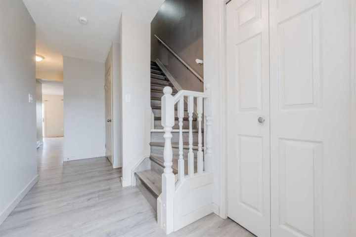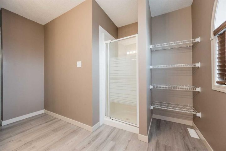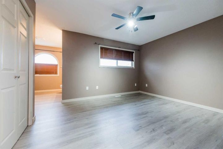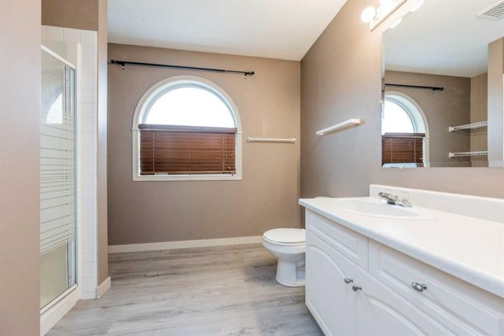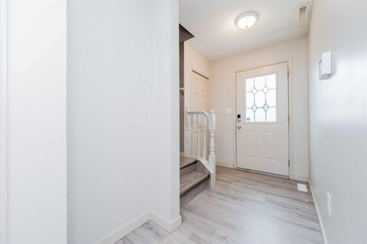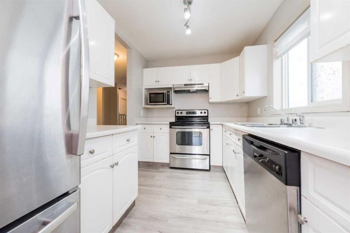 Very well-kept Duplex in Crystal Heights with attached single-car garage!!! There are 3 bedrooms, 3 bathrooms, and 1171 sq ft. This home is perfect for a first-time home buyer or an investment property. ALL laminate flooring throughout!!! The kitchen has white cabinets, stainless steel appliances, and lots of cabinets. The dining area leads out to a good-sized deck and is great for bbqing. Huge living room and a 2 piece bathroom complete the main level. Upstairs has an amazing primary suite with a 3 piece ensuite and storage, Bedrooms 2 /3, and the main 4 piece bathroom. The basement is undeveloped and can easily have another family room and 4th bedroom, there is a laundry area, and storage. The single-car garage is drywalled and has shelves. The backyard is fully fenced, landscaped, and has a shed. Great family neighbourhood and walking distance to schools and playgrounds. Book your showing today!!!
