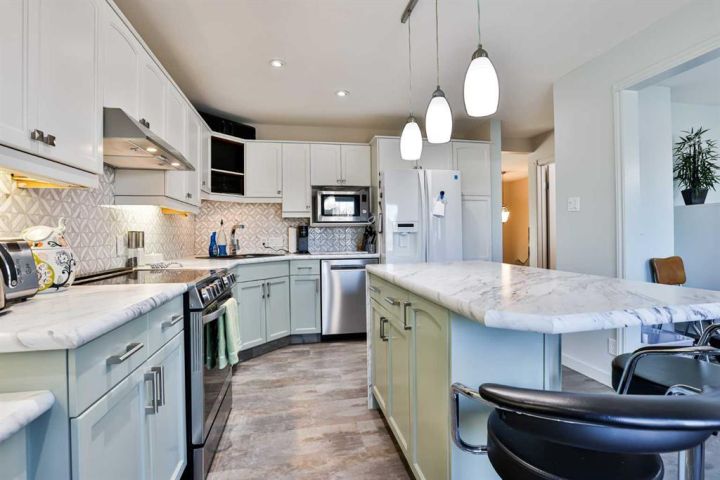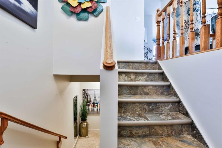 Step into refined living with this beautifully updated and truly move-in ready townhouse, where modern design and quality craftsmanship come together seamlessly. Over the past few years, nearly every major component has been upgraded — including an asphalt-bonded roof on the home, 50-year shingles on the garage, new PVC windows, modern doors, décor light switches, flooring, fresh paint, and stunning bathroom renovations. The kitchen is a showpiece, featuring upgraded cabinetry, countertops, fixtures, and backsplash, all thoughtfully designed for both function and style. It opens to a formal dining area and flows effortlessly to a spacious 12' x 20' Duradeck-covered back deck, complete with two enclosed storage spaces beneath. From here, enjoy a peaceful view of your private yard and a peekaboo view of the park beyond. The upper level offers an open, light-filled floorplan with a contemporary half bath, while the lower level provides two inviting bedrooms and a fully renovated full bath showcasing sleek, modern finishes. With approximately 1,250 sq. ft. of total living space, this home feels bright, open, and elegant throughout, in spite of its relatively small footprint. Out back, the super-single heated and finished garage with paved lane access offers excellent storage, workshop space, and parking for one. Best of all, there are no condo fees or bylaws—just the freedom of homeownership with your own yard to enjoy. Located steps from a serene park that enhances privacy and adds to the sense of space, this exceptional townhouse is the perfect blend of style, comfort, and convenience. Quick possession is available—come experience this gem for yourself today.
