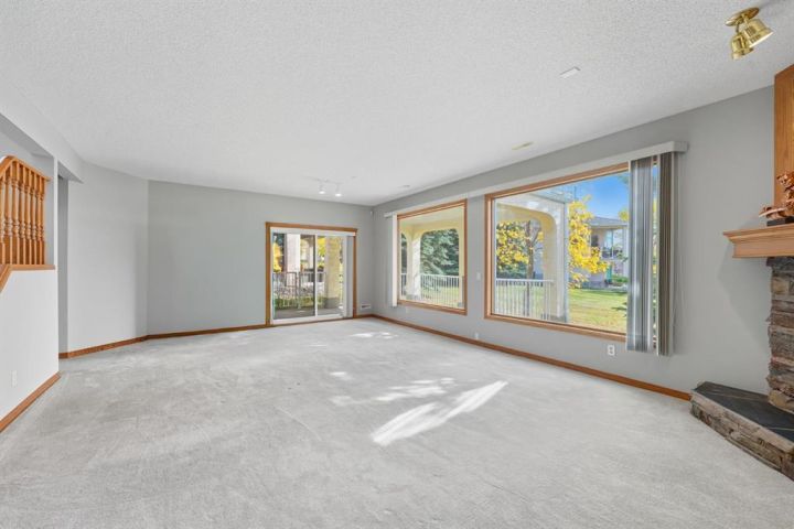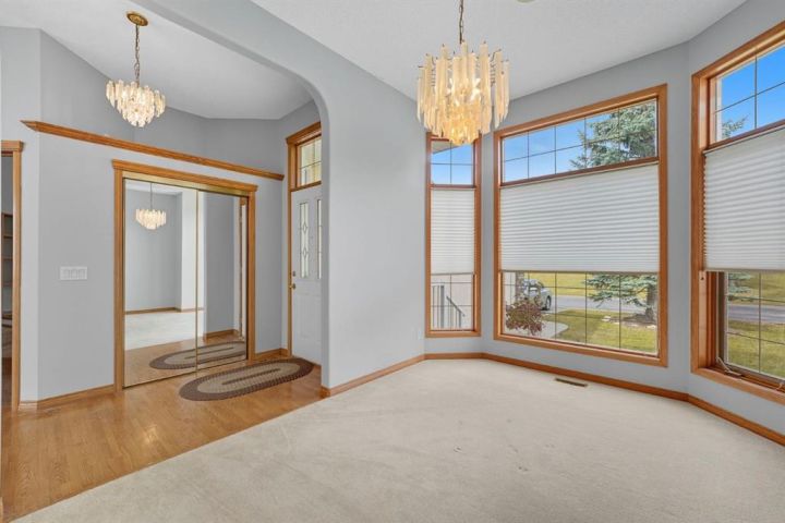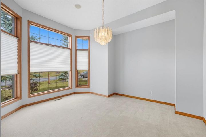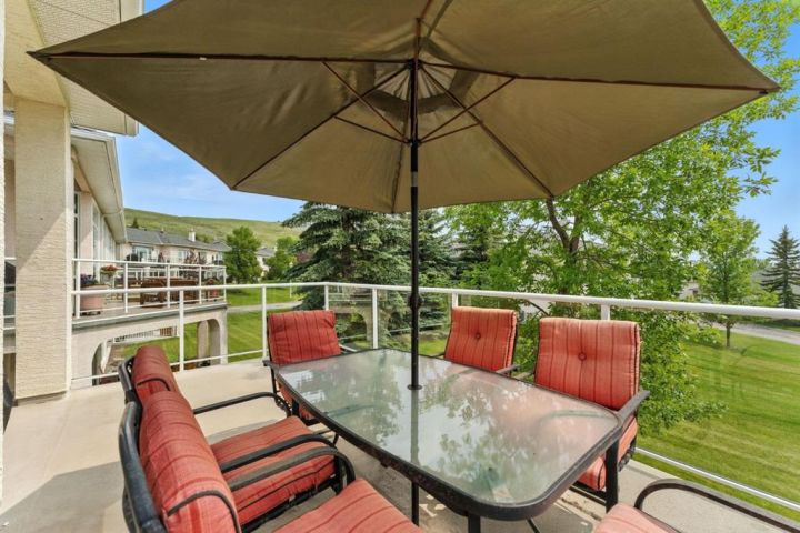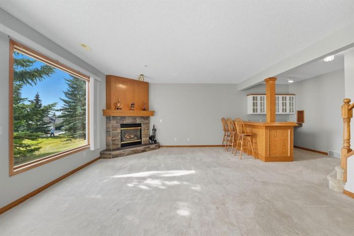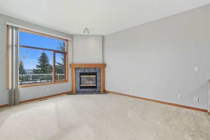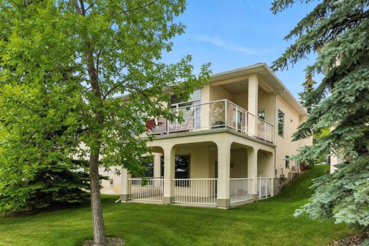 Experience the ultimate in comfort, elegance, and low-maintenance living in this beautifully updated walk-out bungalow villa with over 2,300 square feet of impeccably finished space. Perfectly positioned in the prestigious community of Gleneagles, this remarkable home captures breathtaking views of the fairways and the Bow Valley below. From the moment you arrive, you'll appreciate the exceptional curb appeal, mature landscaping and the peaceful setting that defines this sought-after enclave. Step inside and be greeted by soaring 10-foot ceilings, sun drenched interiors, and bright open-concept design that seamlessly blends sophistication with warmth. Expansive windows and well-placed skylights ill the home with natural light, creating an inviting atmosphere from every angle. The rich hardwood floors, stylish finishes, and freshly repainted interior highlight the quality craftmanship throughout. The heart of the home is the gourmet kitchen - beautifully equipped with elegant cabinetry , quality stainless steel appliances, granite countertops, and spacious work area ideal for entertaining or everyday living. The adjoining dining and living areas offer the perfect settings for intimate dinners or lively gatherings, complete with panoramic views and access to the upper newly replaced Duradek - a prime spot for relaxing evenings and vivid sunsets over the valley. The luxurious primary retreat provides a serene escape, featuring a generous walk-in closet and a spa-inspired ensuite with soaker tub, separate shower, and dual sinks. A bright secondary bathroom is conveniently located nearby for family or guests or family. The main floor also includes a versatile office or flex room that adapts easily to your lifestyle - ideal for working at home or pursuing personal projects. The walk-out lower level is equally impressive, offering an expansive open layout with large windows that flood the space with natural light. this level includes a comfortable family room with a cozy gas fireplace, a guest suite with full bathroom, and additional flex space perfect for a home gym, hobby room, or an additional bedroom. Step outside to the covered patio where you can unwind and take in the peaceful surroundings and tranquil valley views. Every detail of this home is designed for comfort and convenience. the double attached garage provides secure parking and extra storage, while the professionally maintained landscaping ensures you can enjoy a worry-free lifestyle, with its combination of location, layout and finishes, this villa perfectly balances the ease of condominium-style living with the feel of a private single-family home. Minutes from Cochrane's charming downtown, scenic pathways, natural reserves, and all amenities - and only a short drive to Calgary - this property offers the best of both worlds. whether you're seeking a lock-and-leave lifestyle or or a peaceful forever home, exceptional value, design and an unbeatable setting in one of Cochrane's most desirable communities!!!