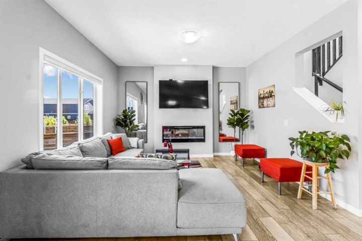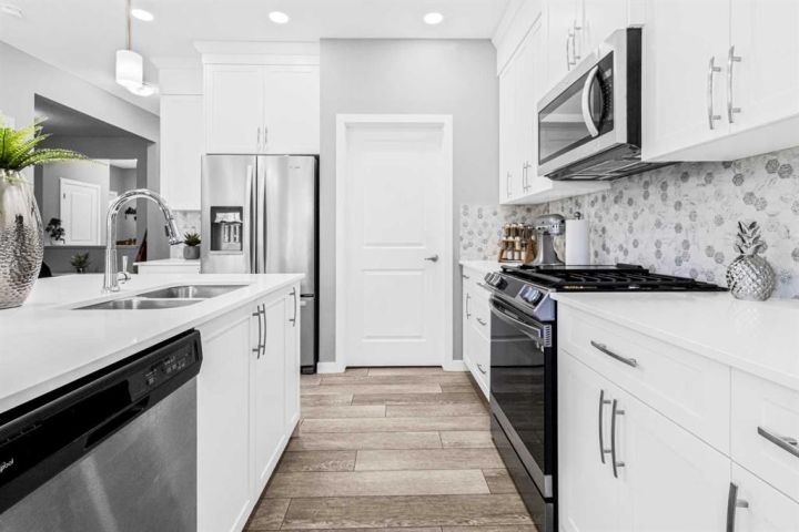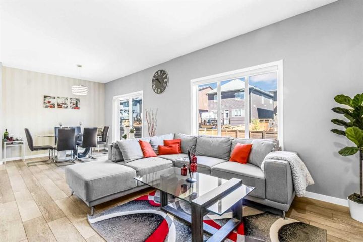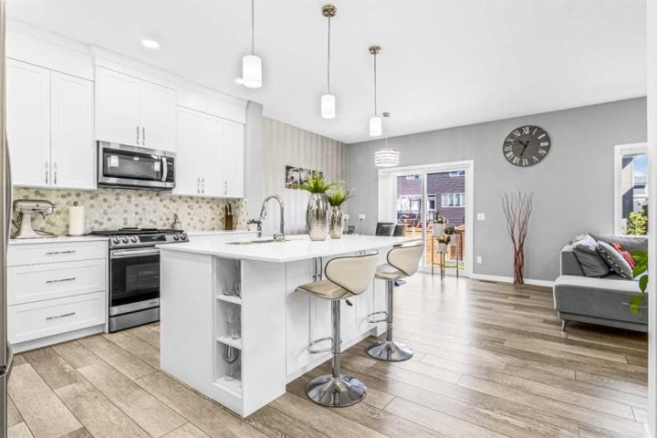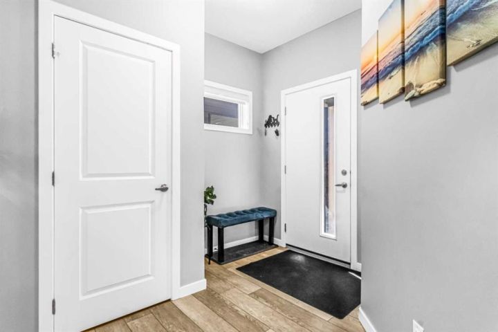 Tucked away on a peaceful cul-de-sac, this stunning two-storey home blends modern elegance with everyday comfort, offering over 2300 square feet of beautifully finished living space designed for families of all sizes. From the moment you arrive, you'll be welcomed by the serene charm of this sought-after neighborhood, just a short stroll to a sunny playground, and the ever-popular Chinook Winds Spray Park, where summer memories are made. Step inside and take in the airy 9-foot ceilings on both the main and upper levels, complemented by rich luxury vinyl plank flooring that flows seamlessly throughout. The main floor features a versatile den — perfect for a home office or cozy reading nook — and an entertainer’s dream kitchen. The chef-inspired kitchen showcases polished white quartz countertops, timeless cabinetry, and a separate spice kitchen, ideal for hosting gatherings or keeping everyday cooking neatly tucked away. The open-concept layout offers a natural flow from the kitchen to the bright dining area and inviting living room, creating a space that’s as functional as it is stylish. Upstairs, you’ll find four spacious bedrooms, including a luxurious primary retreat with a spa-like ensuite. Indulge in the extended soaker tub, then step up to the dual vanity framed with elegant quartz finishes that echo the home’s refined style. A large bonus room provides the perfect hangout for movie nights, a play area, or quiet family time. Step outside into the beautifully finished backyard, ready for outdoor living — whether you're grilling on the BBQ, playing with the kids, or relaxing with a good book. The unfinished basement offers endless potential to create your ideal space — home theatre, gym, guest suite, or hobby room — the choice is yours. This home checks all the boxes: location, layout, and luxury. With thoughtful details and a warm, welcoming feel, it’s ready to welcome you home. Book your private showing today and see what makes this home truly special.