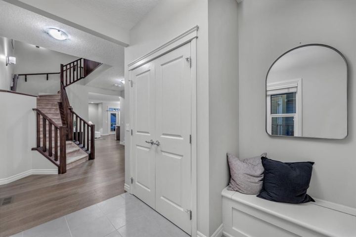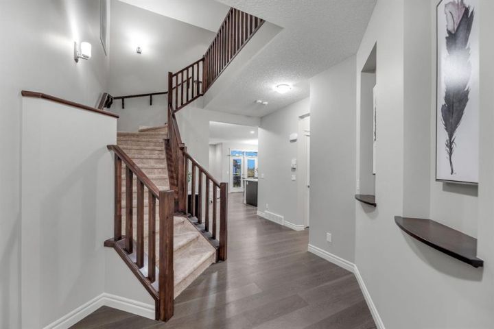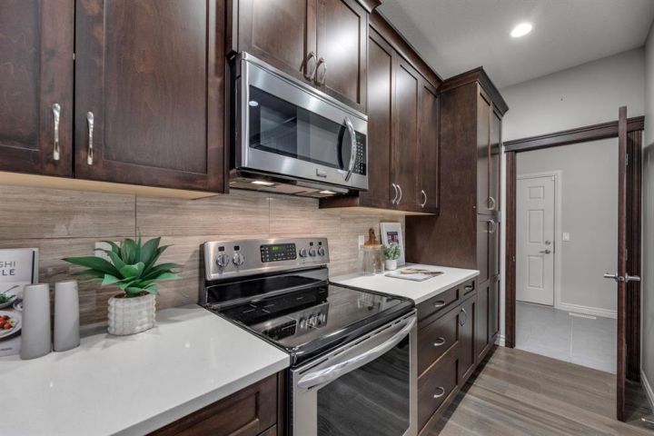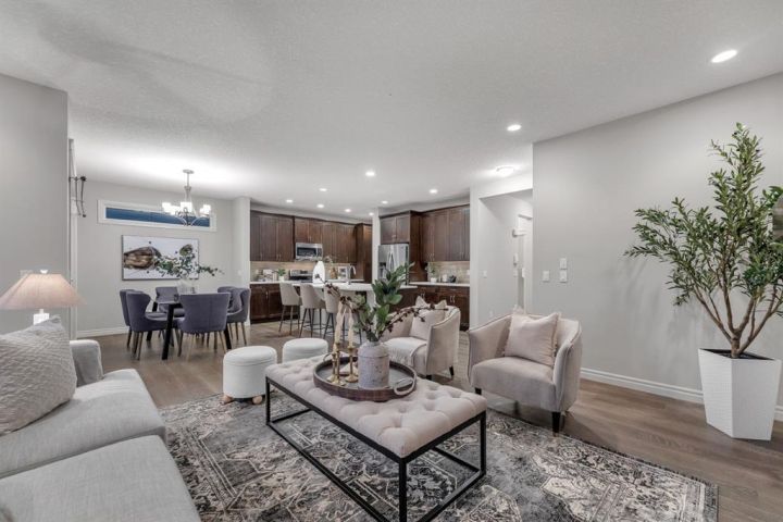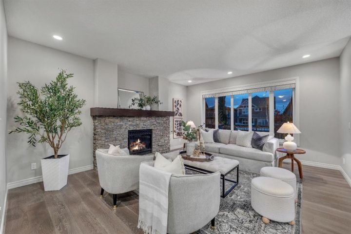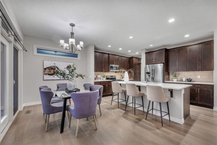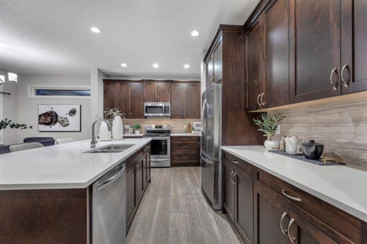 REALTOR BONUS of 5k if conditions are waived by Nov 14 - Step into this stunning 4-bedroom Trico built walkout home, offering over 3,300 sq ft of developed living space, and backing directly onto a peaceful pathway with direct access to the Mahogany wetlands—providing rare privacy and scenic views right in your own backyard. The fully fenced yard and elevated balcony make it easy to enjoy your morning coffee or take in breathtaking evening sunsets while overlooking one of the most desirable natural landscapes in the city. Inside, a grand front entry leads into a bright, open-concept main floor where expansive windows flood the kitchen, dining, and living areas with natural light. A central fireplace serves as a cozy focal point of the living room, while the kitchen features a quartz countertop island, generous counter space, and direct access to the upper balcony for effortless indoor-outdoor living. A smart walkaround layout connects seamlessly to the mudroom, attached garage, and convenient half-bath. Throughout the main floor, engineered hardwood flooring enhances the sense of flow and style. Upstairs, you'll find a spacious bonus room ideal for a media area or playroom, along with two additional bedrooms that share a full bath. The standout is the luxurious primary retreat, complete with high tray ceilings, a spa-inspired ensuite featuring a soaker tub, walk-in shower, double vanity, and a large walk-in closet. The fully finished walkout basement has been newly developed with modern style ~ which offers even more living space, including another generous great room with direct access to the backyard and the serene private pathway beyond which takes you through the various nature setting wetlands. You will also find a spacious additional bedroom with outdoor access, a 3-piece bathroom, and a built-in bar area—perfect for entertaining. For further comfort and convenience, the home has dual air-conditioning, perfect for year-round comfort! Located in the vibrant lake community of Mahogany, you can enjoy exclusive access to beaches, swimming, paddleboarding, and year-round recreation with skating as a winter seasonal hi light. With top-rated schools, shops, restaurants, and a lively community center nearby, Mahogany offers the perfect blend of nature, luxury, and convenience.