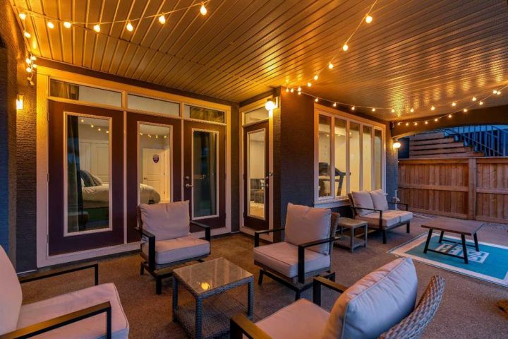 Patio Lights on Outdoor Patio, Bar Refrigerator