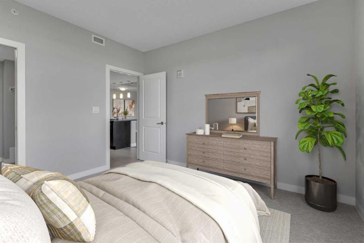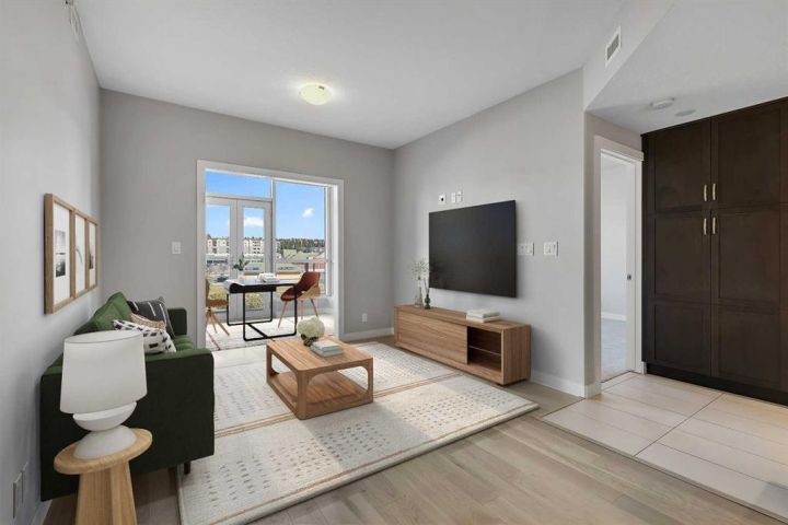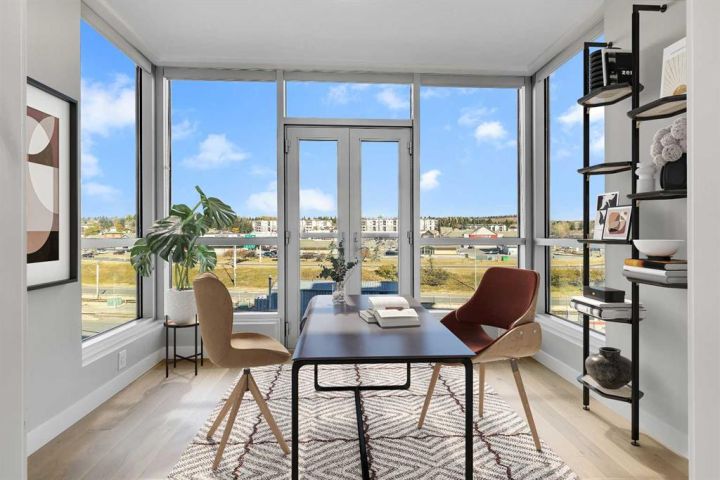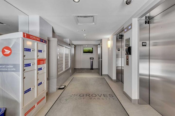 >>> OPEN HOUSE SUNDAY OCTOBER 26TH 2PM-4PM <<< Immaculate CORNER UNIT in The Groves of Varsity! As soon as you enter the unit, you will notice the bright and open floor plan including the spacious living and dining areas opening up to the modern kitchen which features granite countertops, ceiling height maple cabinetry, a large detached island, and stainless steel appliances. Additional living space includes a den/office space with huge windows. The primary bedroom includes a large walk through closet and a luxurious ensuite with double sinks. The second bedroom is ideal for guests and an additional den/office space. A second full bathroom, in-suite laundry, and ample storage complete the home. Additional features & updates include fresh paint, new engineered hardwood floors, new carpets, a titled underground parking stall, and a secured storage locker. Enjoy exceptional building amenities including a gym, steam room, owners lounge, rooftop terrace with mountain views and BBQ area, quiet courtyard, and tons of visitor parking. Prime location includes on site professional plaza(doctor’s office, pharmacy, and coffee shop) and across from Dalhousie LRT, Dalhousie Station Shopping Centre, and close to parks and schools. A rare opportunity to own a move in ready, upgraded corner unit in one of Calgary’s most desirable communities! Call your agent for a private showing today!