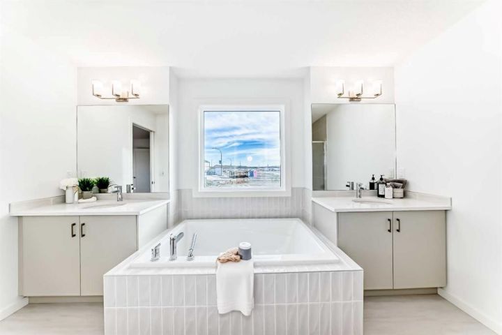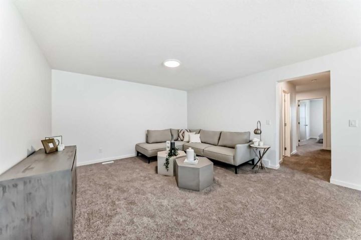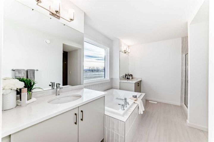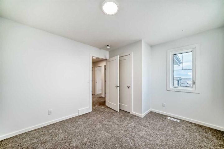 LET’S CALL THIS WHAT IT IS: THE CORNER LOT THAT MAKES EVERYTHING ELSE FEEL LIKE A COMPROMISE. Cornering a BRAND-NEW PARK (play structure, picnic tables, pathways, trees), front facing privacy with no driveway staring you down from across the street, and MOUNTAIN GLIMPSES IN THE DISTANCE—this is the southwest address that checks the “location” box before you’ve even turned the key. A block away, a stretch of natural greenspace and trees softens the horizon, giving the neighbourhood that just-finished-but-already-established feel. And did you notice? THE YARD IS ALREADY DONE (front to back, fully sodded), so weekends start at the park, not the garden centre. Inside, 2,585 SQ FT lands on the right side of “big enough” and “beautifully planned.” Light, fresh, modern finishes keep the mood calm—warm wood-toned floors ground crisp lines and a clean palette that’s both photo-ready and easy to live with. The kitchen means business: BUILT-IN WALL OVEN AND MICROWAVE, GAS COOKTOP, QUARTZ THROUGHOUT, AND A PROPER WALK-THROUGH PANTRY so groceries move from garage entry to counter without the chaos. Eight-foot doors on the main add quiet presence; an electric fireplace anchors the great room without stealing square footage. A rare MAIN-FLOOR BEDROOM sits beside a FULL BATH with tile-and-glass shower—ideal for guests, in-laws, or a focused office that’s not wedged into a landing. Upstairs, the BONUS ROOM keeps the second floor social while FOUR UPPER BEDROOMS keep it practical. The master bedroom shows off with a SOAKING TUB and matching window, DUAL VANITIES, a TILE-AND-GLASS SHOWER, and a LARGE WALK-IN CLOSET that actually behaves like one. Even the main bath gets a DUAL SINK VANITY, because mornings shouldn’t be a negotiation. UPPER-FLOOR LAUNDRY keeps chores on the right level, and a tall stairwell window tunnels daylight where you feel it most. Downstairs, an unfinished lower level with a SEPARATE EXTERIOR ENTRY, 9' FOUNDATION WALLS, and 200-amp service sets you up for whatever’s next—gym, media, hobby space—without painting you into a design corner. Outside, the 12'×10' DECK WITH BBQ GAS LINE extends dinner into golden hour, and the 22'×20' ATTACHED GARAGE handles real vehicles plus the seasonal gear that comes with a Calgary life. Commuting or escaping is straightforward—QUICK ACCESS TO STONEY, everyday essentials close by, and FISH CREEK A SHORT HOP AWAY—so the routine stays easy and the weekend drive west stays tempting. Move-in ready with flexible possession. Come stand on the corner, walk to the park, and feel how this one lives. • PLEASE NOTE: Kitchen appliances are included, and will be installed prior to possession.