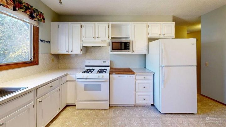 Dishwasher, Dryer, Gas Stove, Refrigerator, Washer, Window Coverings