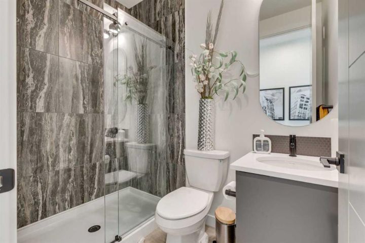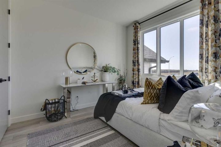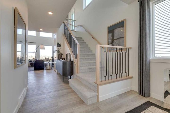 Discover The Amber – a stunning blend of modern design and practical luxury. Built by a trusted builder with over 70 years of experience, this home showcases on-trend, designer-curated interior selections tailored for a home that feels personalized to you. Energy efficient and smart home features in each home. This home offers a side entrance and a main-floor bedroom with full bath, perfect for guests or family. The executive kitchen boasts built-in stainless steel appliances, gas cook top, waterfall island, and stylish pendant lighting. A separate spice kitchen includes a gas range, French door, and pantry shelving. The open-to-above great room features a gas fireplace and is flooded with natural light from abundant windows. Upstairs, relax in the spacious primary bedroom with a 5-piece ensuite. This energy-efficient home is Built Green certified and includes triple-pane windows, a high-efficiency furnace, and a solar chase for a solar-ready setup. With blower door testing that may be eligible for up to 25% mortgage insurance savings, plus an electric car charger rough-in, it’s designed for sustainable, future-forward living. Featuring smart home technology, this home includes a programmable thermostat, ring camera doorbell, smart front door lock, smart and motion-activated switches—all seamlessly controlled via an Amazon Alexa touchscreen hub.Photos are a representative.