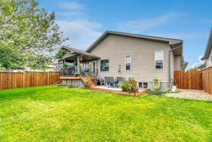 Welcome to this beautifully appointed bungalow located in the highly desirable and family-friendly community of Cambridge Glen — just steps from schools, playgrounds, and convenient shopping amenities. From the moment you enter, you're greeted by a bright and versatile front room with large picture windows — perfect for a stylish home office, guest suite, or cozy reading lounge. The main level features a well-designed layout, including a serene primary bedroom retreat complete with a private 3-piece ensuite, as well as a spacious secondary bedroom. The open-concept main living area is ideal for both relaxing and entertaining, offering a generous new kitchen (installed December 2023), a dedicated dining space, and an inviting living room anchored by a charming corner gas fireplace. This home has seen numerous recent upgrades, including a new roof (June 2022), high-efficiency furnace (March 2023), hot water tank (Fall 2022), and air conditioning (May 2022) — ensuring comfort and peace of mind for years to come. The existing deck was improved in June 2021, and a new fence was added in June 2025, creating a backyard that is both functional and stylish. Step outside to your private backyard oasis, where you'll find a covered deck — perfect for year-round enjoyment — and a fully fenced yard, ideal for kids and pets to play safely. Downstairs, the fully finished basement provides exceptional additional living space, including two large bedrooms, a modern 4-piece bathroom, and an expansive family or media room perfect for movie nights or hosting guests. Tucked away on a quiet cul-de-sac, this home offers both privacy and peace of mind, with ample space for children to play safely both in the front and back.