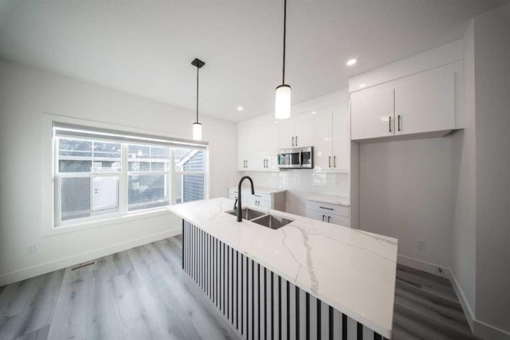 Located at 55 Baysprings Terrace SW, this meticulously designed townhouse offers 1,685 square feet (Unit under construction, waiting for accurate measurements of house and rooms. Interior pictures are from a similar unit) of modern living space, exuding both sophistication and comfort. The open-plan layout welcomes abundant natural light into a refined space where every detail has been thoughtfully curated. On the main level, durable vinyl flooring sets the stage for a contemporary kitchen complete with sleek quartz countertops and stainless steel appliances—ideal for inspiring culinary creations. A convenient powder bath and an adjoining mudroom that leads to a private backyard with a double car garage add both functionality and ease. Upstairs, premium carpeting flows through spacious bedrooms, complemented by elegantly tiled bathrooms and a well-appointed laundry area. With 3 generous bedrooms and 2.5 beautifully designed baths, this home effortlessly accommodates both relaxation and everyday living. Situated just minutes from Nose Creek School (K-4), shopping, parks, playgrounds, and scenic trails, this townhouse is perfectly positioned for families and professionals alike.