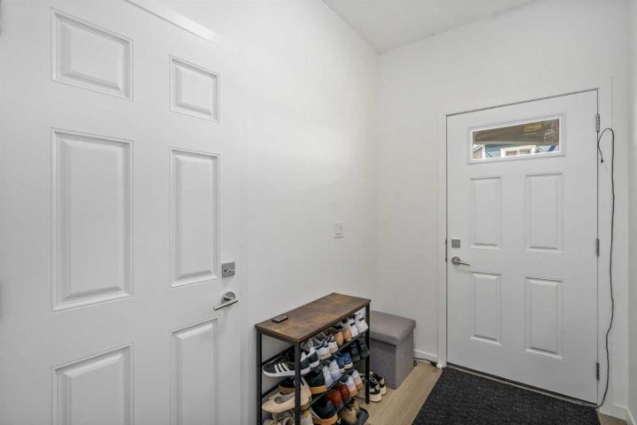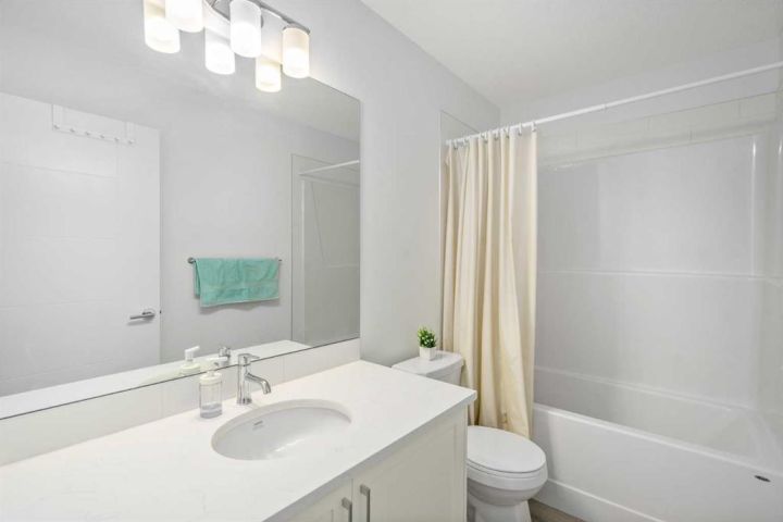 Step into modern comfort with this beautifully designed 2-bedroom, 2.5-bath townhome in the heart of Copperfield. Built in 2024, this bright and contemporary home offers over 1,400 sq. ft. of living space with clean lines, smart design, and quality finishes throughout. The open-concept main living area on the second floor is filled with natural light and features engineered laminate flooring, a stylish kitchen with quartz countertops, upgraded cabinetry, and stainless steel appliances. The spacious living and dining areas flow seamlessly to the balcony with a BBQ gas line—perfect for morning coffee or summer grilling. Upstairs, you’ll find two comfortable bedrooms, each with its own full bathroom, plus convenient upper-floor laundry. The ground level offers a tandem double garage (16’ x 40’) and access to a private rear patio space—great for relaxing or adding some greenery. Additional highlights include low condo fees ($259/month), new home warranty coverage, and a quiet location close to parks, playgrounds, schools, and shopping. Whether you’re a first-time buyer, young professional, or looking for a low-maintenance lifestyle in a growing community, this townhome checks all the boxes.