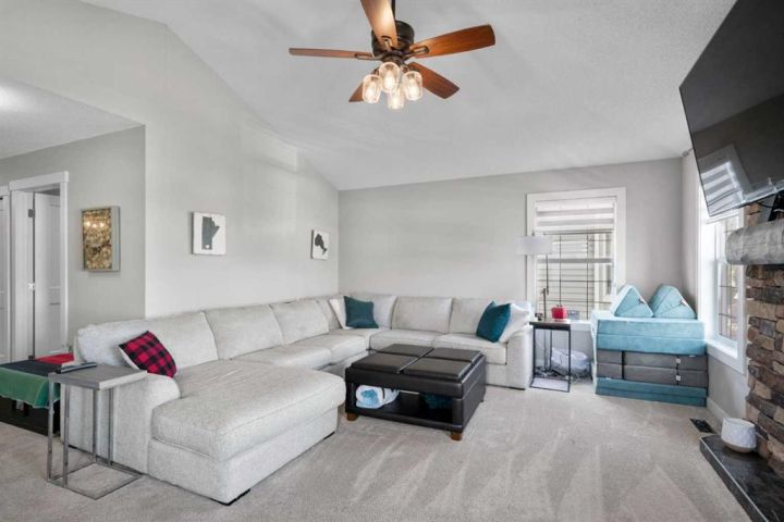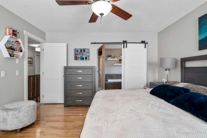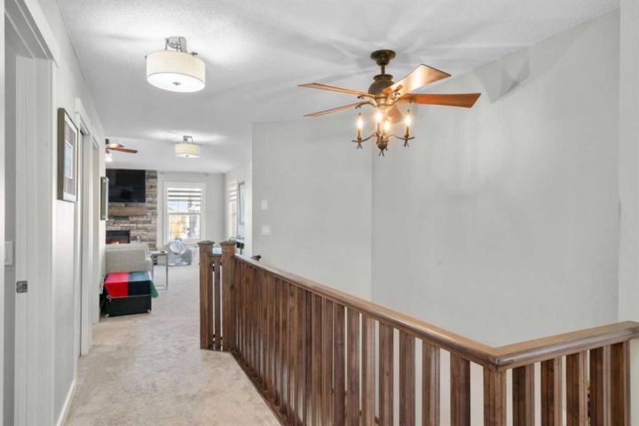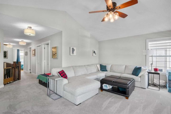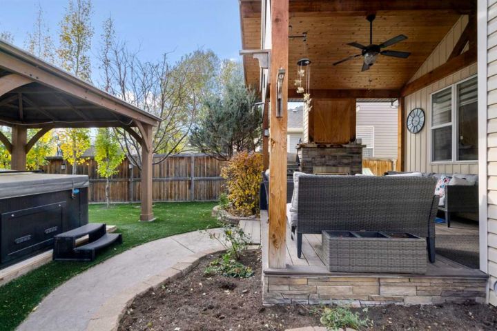 Welcome to 2581 Coopers Circle SW in the vibrant sought after community of Coopers Crossing. This well appointed home boasts over 3000 sq ft in total development. With abundant large windows, central air conditioning for those hot days and gleaming hardwood floors this home is oozing with warmth and functionality right from the moment you enter into the open concept floor plan. The main floor consists of a mud room that you will love with individual storage space, a separate office with built-ins, 2 pc bathroom and then come on into your dream Chefs kitchen featuring expansive granite countertops, a coffee corner, copious amounts of cabinets, pantry and a huge island with extra seating space for entertaining or just your family. All this open to your large dining area and a spacious living room that has floor to ceiling windows. Upstairs boasts a bonus room for your family to spend time together around the beautiful gas fireplace, a 4pc bathroom, separate laundry room and 3 good sized bedrooms including the luxurious Primary bedroom large enough for a king bed and furniture complete with a walk-in closet and a spa like 4pc ensuite. There is plenty of additional living space with the fully finished lower level. Here you will find another 4pc bathroom, a den which can possibly be a future bedroom, a work out area, and a huge recreation/family room, a cozy 3 way gas fireplace and the best part yet is a Murphy Bed on the wall for those guests that stay over! A highlight of this property is the covered deck for you to enjoy year around with yet another gas fireplace! There is even more...no need to mow the back lawn with this artificial turf that looks so real, a gazebo to put your hot tub under, concrete pad for extra entertaining space and a single car garage that can be used to park a car or maybe even for your gym. No need to worry about parking as there is also a attached oversized garage. This is a Beautiful Home that you will not want to miss out on!
