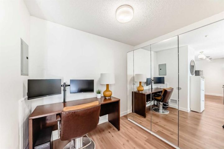Welcome to this bright and spacious 2-BEDROOM PLUS DEN, 2-BATHROOM apartment featuring TWO UNDERGROUND PARKING STALLS! This beautiful home offers numerous upgrades, including NEW LUXURY VINYL PLANK FLOORING throughout with an EXTRA LAYER OF SONOPAN INSULATION, and NEW VINYL TILE in both bathrooms. The OPEN-CONCEPT layout creates an inviting space for everyday living and entertaining. The kitchen features GRANITE COUNTERTOPS and a BREAKFAST BAR, perfect for meal prep or casual dining. The dining area easily accommodates a larger table, while the cozy living room is ideal for relaxing at the end of the day. The primary suite offers SPACE FOR A KING-SIZED BED, a walk-through closet, and a private ensuite bathroom. The second bedroom is generously sized, and the DEN provides flexibility for a home office, study area, or extra storage. Additional highlights include IN-SUITE LAUNDRY, two titled underground parking stalls, ample visitor parking, and UPDATED COMMON AREAS. Young families will love the NEARBY GREENSPACE and PLAYGROUND. WALKING DISTANCE TO THE FRANKLIN C-TRAIN and minutes from Deerfoot Trail, schools, shopping, and all amenities. Don’t miss out—book your showing today!