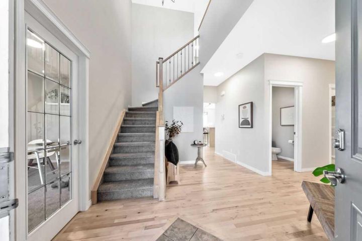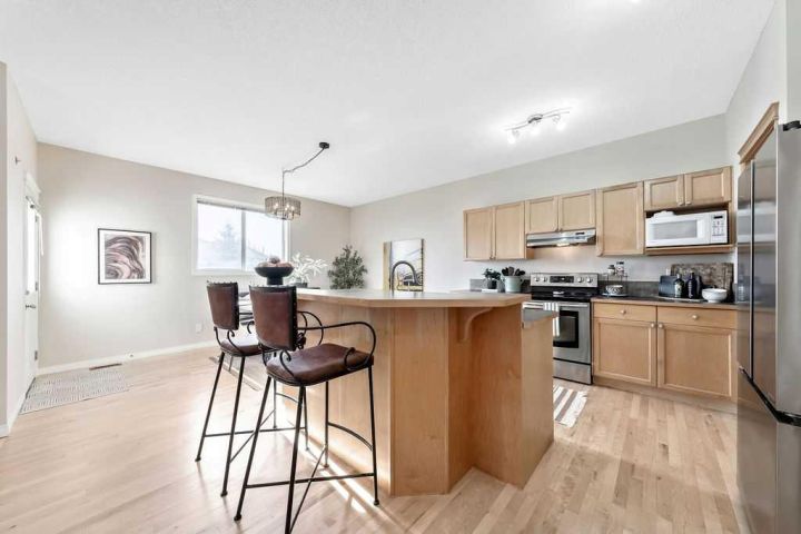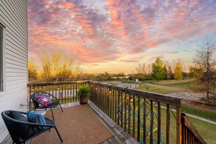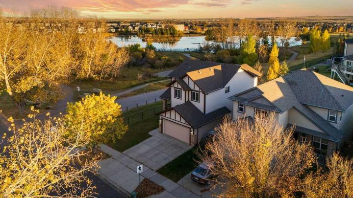 LOCATION, LUXURY, LIFESTYLE & VALUE! Don’t miss this exceptional end-lot property perfectly positioned beside a serene pond teeming with waterfowl and surrounded by picturesque natural beauty. Backing directly onto greenspace and scenic pathways, this home offers the kind of peaceful setting and daily views that simply can’t be beat. LOCATION, LOCATION, LOCATION! Step inside to nearly 2200 SQFT of thoughtfully designed living space featuring an ideal open-concept floorplan. The main level showcases solid maple hardwood floors, a bright and spacious office/den, and a sun-soaked living area that flows seamlessly into the dining space and kitchen, perfect for both entertaining and family living. This home has been beautifully refreshed with refinished maple hardwood floors, brand-new carpet, fresh paint throughout, and a complete electrical update, delivering modern comfort and total peace of mind. Additional major upgrades include a sump pump, water softener, and a tankless hot water system, ensuring efficiency and reliability year-round. The unfinished basement offers endless potential for future development and instant equity, making this one of the most valuable and opportunity-rich homes in the community. Upstairs, you’ll find three generous bedrooms, a bonus room, and a convenient laundry area. The primary suite is a true retreat! massive in size, with a 4-piece ensuite and breathtaking views overlooking the pond and greenspace. Step outside to your sunny south-facing raised deck, the ultimate spot for relaxation and enhanced outdoor living. Take in the tranquil sights and sounds of nature or enjoy evenings surrounded by unmatched natural beauty right from your own backyard. Located in Drake Landing, one of Okotoks’ most sought-after neighbourhoods, you’ll enjoy exceptional convenience and family-friendly amenities. Walk to top-rated schools, nearby parks, playgrounds, and off-leash areas, or explore the network of trails and pathways that connect the community. With easy access to shopping, restaurants, and major routes into Calgary, Drake Landing offers the perfect blend of small-town charm and everyday convenience, truly the best of both worlds!