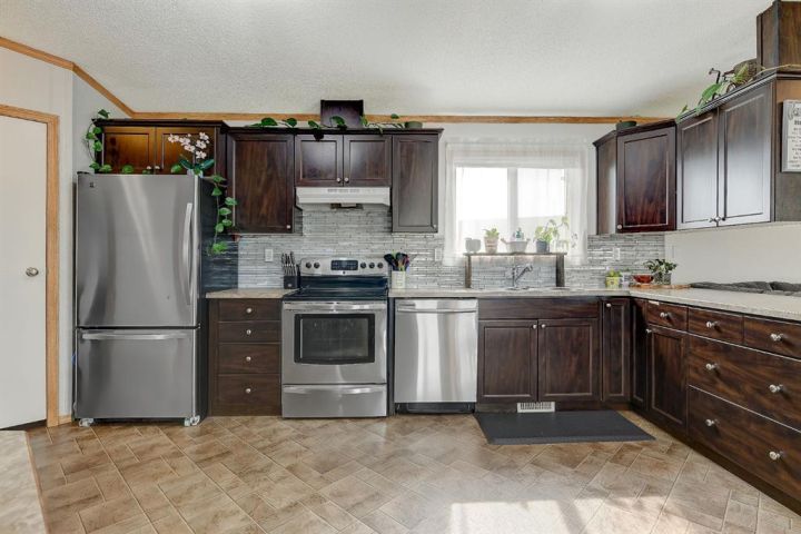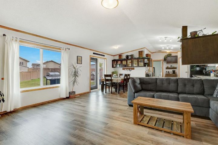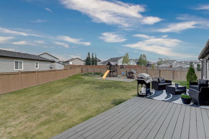 Set on one of the biggest lots in the neighbourhood, this four-bedroom home in Clairmont has the space and layout perfect for families! Step inside and you’ll notice right away how bright and welcoming it feels. Vaulted ceilings open up the main living area, and a large front window fills the space with natural light. You’ll notice vinyl plank flooring underfoot, adding warmth and tying the space together as it leads naturally into the kitchen and dining area. In the kitchen, you’ll find rich, dark cabinets, stainless steel appliances, and a pantry that’s perfect for storing things away and keeping your counters clear. Across from it, the dining area includes built-in cabinetry with glass doors for display and double patio doors that bring in even more light and lead to the back deck. On one side of the home, the primary bedroom feels calm and spacious with room for a king bed, two tall windows that let in plenty of light, and a walk-in closet. The ensuite has a wide vanity with plenty of storage, a jacuzzi tub, and more natural light—a rare find in most bathrooms. On the opposite side, you’ll find three more bedrooms and another full bathroom, giving everyone their own space. Finishing off the interior, the laundry room is spacious with extra cabinetry and room for a deep freeze or additional storage. Step outside and the fenced yard offers space to enjoy every season. During summer, there’s room to garden, for kids to play, or gather on the large deck. The fire pit and size make it easy to enjoy year-round, and a shed adds practical storage for tools or outdoor gear. The lot itself is a standout—a massive pie shape that backs onto green space, giving you privacy and space that’s hard to find. Located on a cul-de-sac in Clairmont, this home is close to schools, parks and comes with the bonus of lower county taxes. Bright, well-kept, and sitting on one of the largest lots in the area, you don’t want to miss out on this amazing home! Call your REALTOR® today to book a showing.