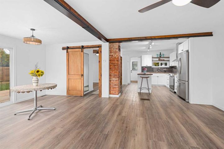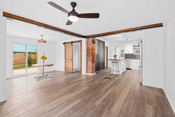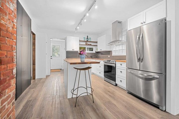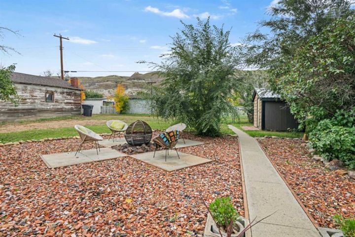Fully renovated bungalow on a double lot in East Coulee! Keep cozy this winter with brand new R40 insulation installed in the attic of this one bedroom, one bath gem. This house is perfect for those looking for a stylish contemporary home. Remodelled top to bottom, the house is full of custom features. The spacious kitchen boasts walnut countertops, quality stainless steel appliances, original exposed brick chimney and metal feature wall, enhanced by beautiful natural light. You will love the heated floors in the tiled bathroom/ mudroom area, and enjoy the deep soaker tub. The bedroom features a walk in closet, with built in storage and original barn door. The basement provides good dry storage. The outside is as impressive as the inside, with a huge wrap around deck, modern fencing, cosy fire pit and cute shed sitting on a large double lot, with room for rv pull through or garage. If you are thinking of trading city life for the country, the vibrant community of East Coulee in the scenic Drumheller Valley is a quick 1 1/2 hr drive from Calgary, with many recreational opportunities, including hiking, swimming, kayaking and birdwatching. This unique community appeals to creative people, with museums, clay studio, pancake breakfasts, seasonal outdoor cafe and great neighbours-this home really does stand out from the rest!