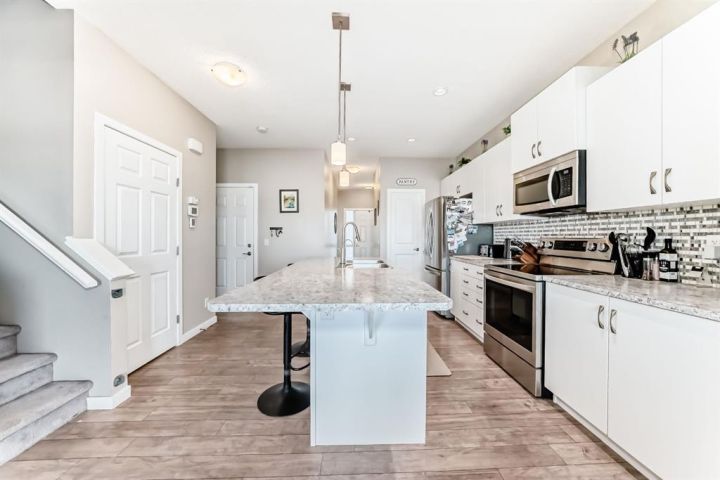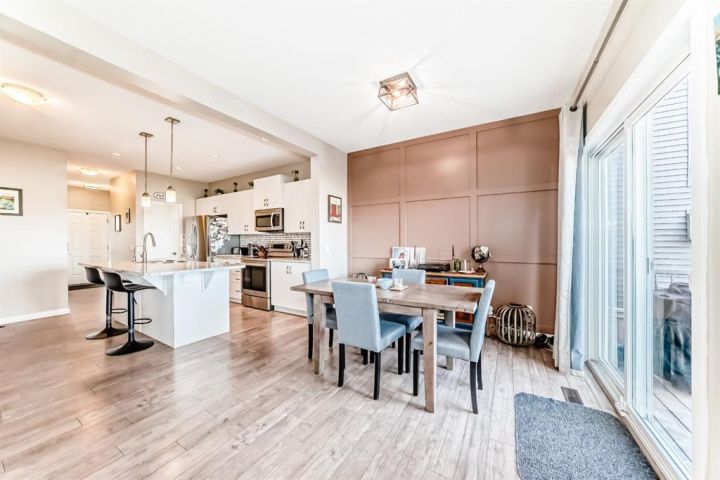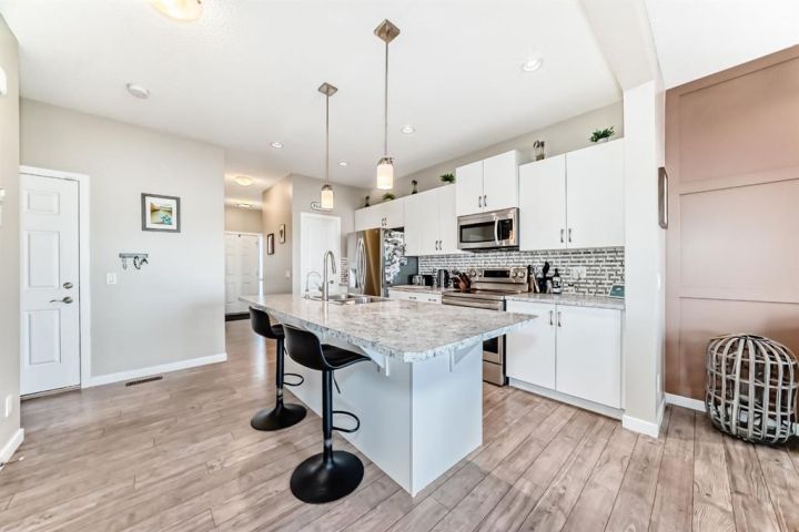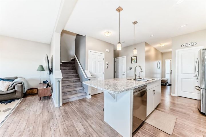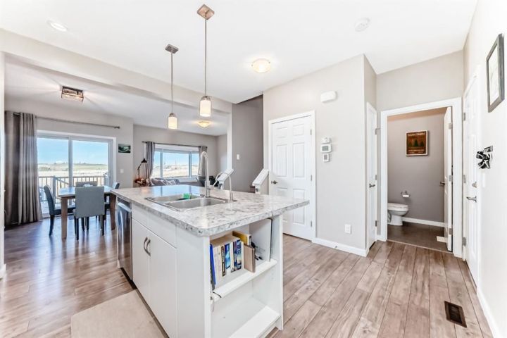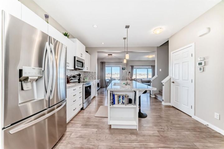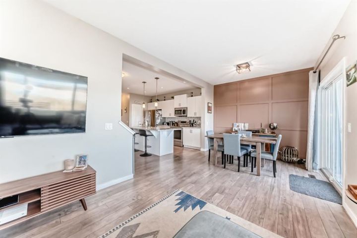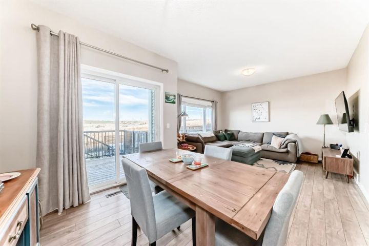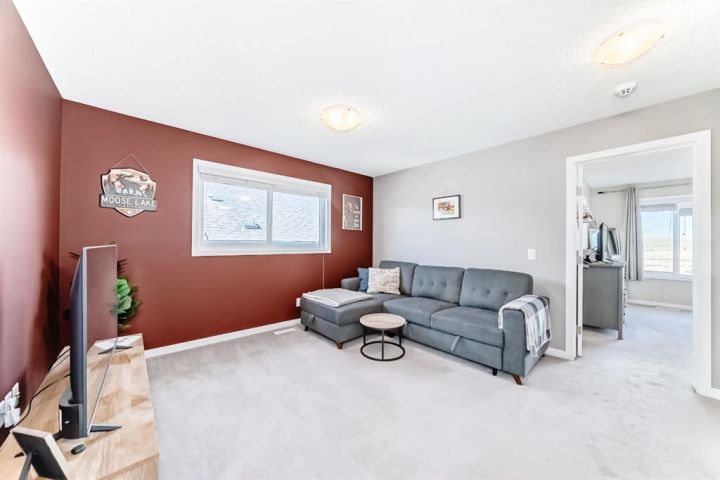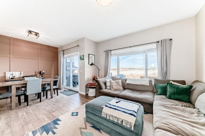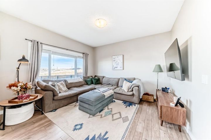 ** OPEN HOUSE: Sunday, October 26th 11-1pm ** Welcome to 391 Sunrise View! This fully developed duplex home offers 2,016 square feet of developed living space and features 4 bedrooms along with three and a half bathrooms and single attached garage. The property boasts a back deck with gorgeous mountain views and a private backyard Oasis. The entrance opens into an open plan kitchen with island, dining, and living area, with the dining room featuring a standout feature wall, complemented by a cozy living room. A convenient two piece bathroom completes the main level. Upstairs, the primary suite includes a four-piece ensuite and a walk-in closet. The upper floor also has a large bonus room perfect for family movie nights, two additional spacious bedrooms, a laundry room, and a family bathroom. The finished basement provides a recreation room, an additional bedroom, and a three piece bathroom, perfect for extended family and guests! Located in the sought after neighbourhood of Sunset Ridge, with easy access to the mountains, biking and walking paths and just a short drive to the Town of Cochrane and its many amenities. It offers easy commuting to Calgary while enjoying small town living. Book your showing today!