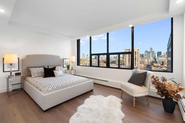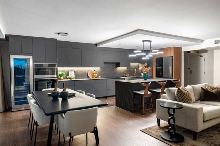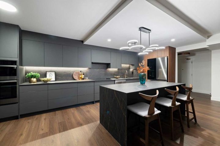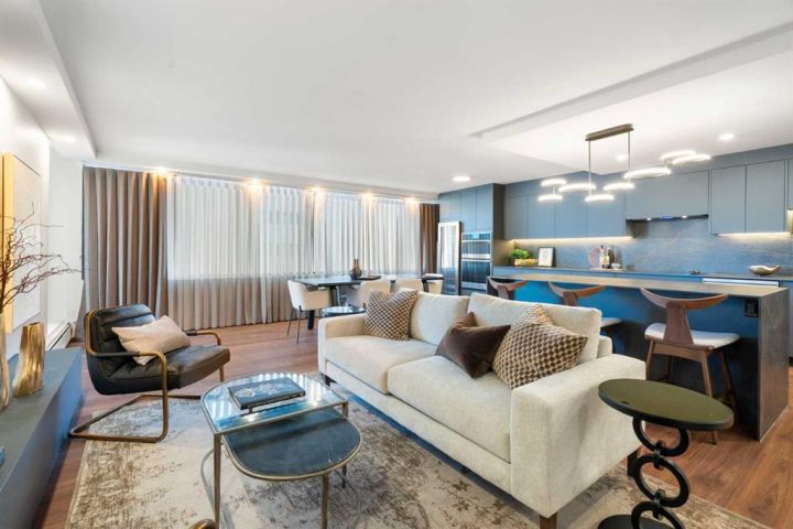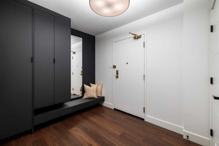 If you’re seeking elevated urban living in Calgary, this stunningly updated corner suite at Roxboro House in Calgary's MIssion district delivers sophistication, style, and sweeping city and river views. Beautifully reimagined with a modern open-concept design, this home is ideal for both daily living and entertaining. The showstopping kitchenfeatures custom-built cabinetry crafted from premium materials, including Dekton countertops with a waterfall island, a stylish appliance package with wall oven, and a Zephyr wine cooler. The layout easily accommodates both a formal dining area and a welcoming living room, each framed by breathtaking downtown vistas. The den offers an inspiring setting to work from home by day and a cozy retreat by night, softly illuminated by the glow of city lights. A luxurious three-piece bathroom showcases striking 2x4 tilework and refined fixtures. A sleek laundry closet is discreetly tucked away for convenience. The principal bedroom comfortably fits a king-sized bed and features an artist hand-painted feature wall with gold accents, adding a touch of bespoke elegance to the serene atmosphere. Enjoy tranquil river and mountain views complimented by the vibrancy of the city. A walk-in closet and beautiful four-piece ensuite complete this restful retreat. The second bedroom is equally impressive, offering a dramatic downtown skyline view. Step onto the private deck from the living or dining area and take in the ever-changing cityscape. Design details throughout include Delta faucets, statement lighting furnished by Cartwright Lighting, and luxury Coretec vinyl plank flooring, blending comfort and high design seamlessly.Roxboro House remains one of Calgary’s most distinguished addresses, offering 24-hour concierge and security, premium amenities including a pool, fitness centre, and social spaces, and an unbeatable riverfront location in the heart of Mission. This residence includes ample in-suite storage, a secure locker, and convenient parking, all accessible by two elevators. Enjoy effortless walkability to parks, pathways, groceries, and Calgary’s finest dining and boutique shopping. Every detail of this exceptional home has been curated to offer refined comfort, style, and distinction—the ultimate expression of urban chic living