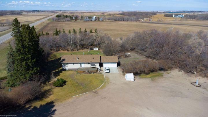 Peaceful Prairie Living Meets Practical Comfort. Welcome to your dream acreage just minutes west of Neilburg, SK! This beautifully maintained 9.88-acre property offers the perfect balance of privacy, space, and convenience—with pavement right to your driveway and a well-kept 1,515 sq ft bungalow nestled among mature treeline. The exterior of the home showcases great curb appeal with updated vinyl siding, newer vinyl windows, and a large deck perfect for relaxing or entertaining. Surrounded by mature trees and beautifully landscaped front and back yards, the property offers privacy and space in a peaceful setting. Inside, the home features a spacious and functional layout with custom blinds and stylish vinyl plank flooring throughout the main level. The large kitchen and dining area includes a built-in hutch, ideal for hosting family meals and gatherings. A bright west-facing living room fills with natural light, while three generous bedrooms provide plenty of space, including a primary suite with its own 2-piece ensuite. You’ll also find a full 4-piece bathroom and a convenient 2-piece bath and laundry just off the side entry. Downstairs offers even more space to stretch out, with two additional large bedrooms, a 3-piece bathroom, a massive family room, and a bonus storage room. Key updates include a new furnace in 2022 and hot water heater in 2023—move in and enjoy peace of mind. Outside, you’ll love the breezeway that leads to the detached double garage, and a 40' x 100' quonset with a heated workshop. There’s also a shed, garden space, and a huge gravel lot ideal for equipment, RVs, or guest parking. Living here means enjoying the charm and amenities of Neilburg—just a short drive away. This vibrant community offers a K–12 school, health centre, grocery store, credit union, restaurants, salon, vet clinic, and a range of local businesses. Families will love the nearby library, museum, and active community centre, while the surrounding countryside is perfect for those seeking fresh air and wide-open space. This is more than a home—it’s a lifestyle. Book your showing today and see what peace rural living can really offer!