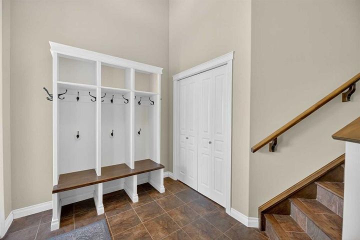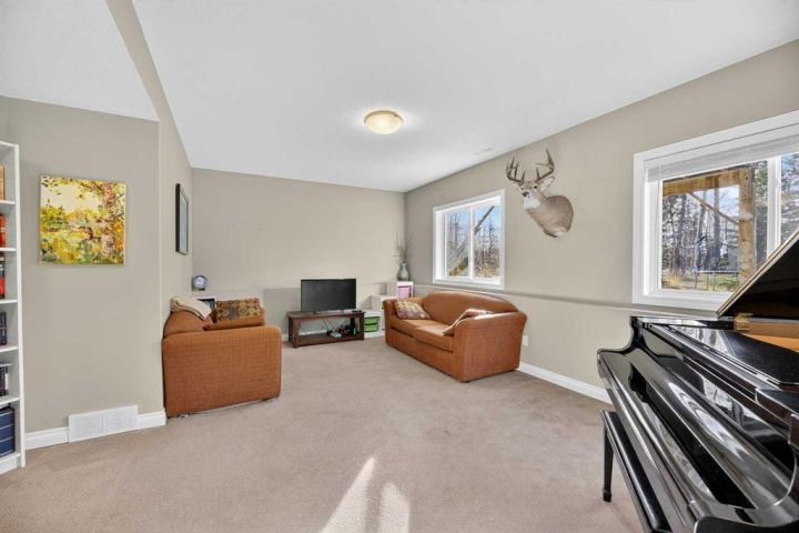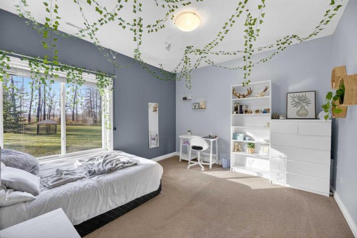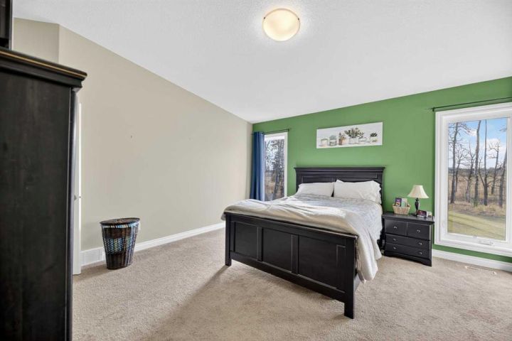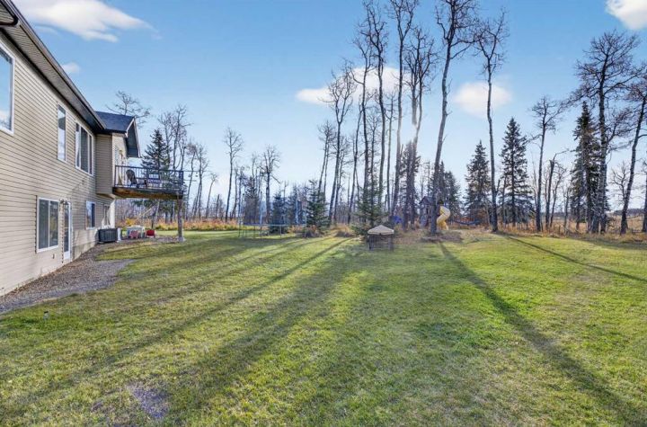 Beautiful and PRIVATE acreage nestled amongst the trees northeast of Sundre. This WONDERFUL property is less than 15 minutes to Sundre, only 25 minutes to Olds, and just over an hour to Calgary. The acreage offers a 2012 custom built Legacy Home with 5 BEDROOMS & WALKOUT basement, mature trees and is SET UP for country living and relaxation. Upon arrival, you will find a little under 5 acres with mature trees, native plants, pasture areas, raised garden beds, firepit area, walking trails, wonderful landscaped yard, and horse shelter, all fully fenced and cross fenced for your horses. The charming custom home is thoughtfully designed offering comfort, functionality, and space for the whole family. It offers a great open floor plan for entertaining indoors and out. From the moment you walk in you are greeted with a large open landing boasting a built-in bench with coat rack and shoe storage, high ceilings, very open floor plan and an abundance of natural light. The main floor includes a spacious kitchen offering stainless steel appliances, generous countertop space, pantry and breakfast bar, dining area leading out onto a nice sized deck - perfect for outside gatherings and bbq, living room with cozy gas fireplace, and a generous sized primary bedroom with a four piece ensuite and walk-in closet. The main floor upper level consists of 2 more nice sized bedrooms, 4 piece bathroom, and convenient laundry room. Downstairs, the fully developed basement features a large family room with walkout access to the backyard, two additional bedrooms with 1 having a cheater door to the 4 piece bathroom and plenty of storage under the stairs - all with IN-FLOOR HEATING. And to top off this wonderful package is an oversized 30’ x 23’ 6” HEATED attached garage. With space to grow and room to entertain, this acreage truly has it all. This property is move-in ready - so it is time to escape from the city and enjoy the privacy and tranquility of country living.