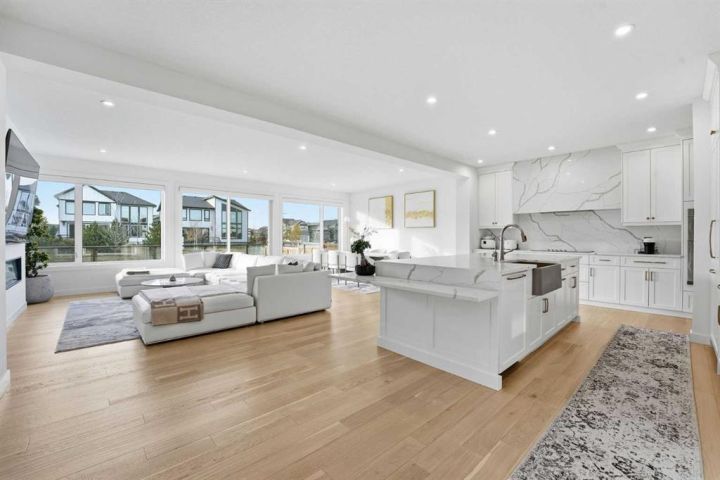 Welcome to this breathtaking luxury estate home in the prestigious community of Rockland Park, where sophisticated design meets modern elegance. The Lucca Model built by Brookfield offers over 3,100 sq. ft. above grade and more than 4,500 sq. ft. of total developed living space, this residence offers a rare combination of grand scale, refined finishes, and serene natural surroundings. Step inside to a massive main living area that exudes a sleek Miami-inspired aesthetic, featuring full marble countertops and backsplash, a state-of-the-art chef’s kitchen, and expansive windows that flood the home with natural light. The open-concept layout flows effortlessly into a spacious dining area that opens onto a full-width deck, perfect for entertaining or relaxing while taking in the lush greenery beyond. Light up your nights with the Gemstone lighting. Upstairs, you’ll find three large bedrooms, including a luxurious primary retreat, along with an open-to-below bonus room that adds architectural drama and brightness to the upper level. The fully developed basement continues to impress with an additional bedroom and bathroom, a versatile flex room or home gym, and a recreation / movie room—the ideal setup for family fun or hosting guests. Backing onto a beautiful greenspace with direct access to the Bow River pathways, this home offers peace, privacy, and proximity to nature while being just minutes from all the amenities that make Rockland Park one of Calgary’s most sought-after communities. Residents of Rockland Park enjoy exclusive access to an incredible community center featuring an outdoor pool, hot tub, sport courts, playground, and gathering spaces—all designed to enhance the vibrant lifestyle this community is known for. Experience elevated living in a home that truly has it all—style, space, and sophistication.