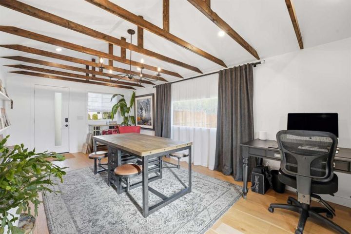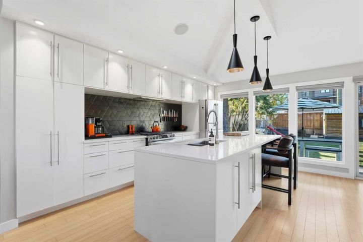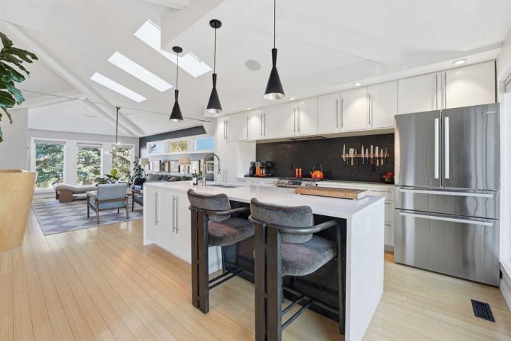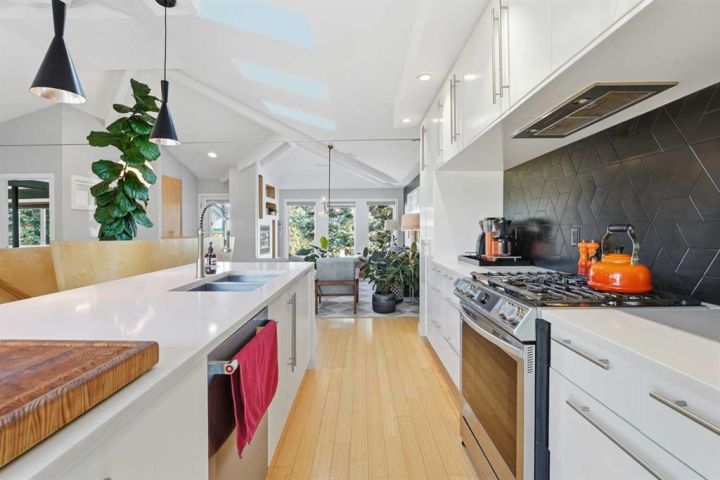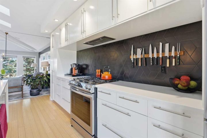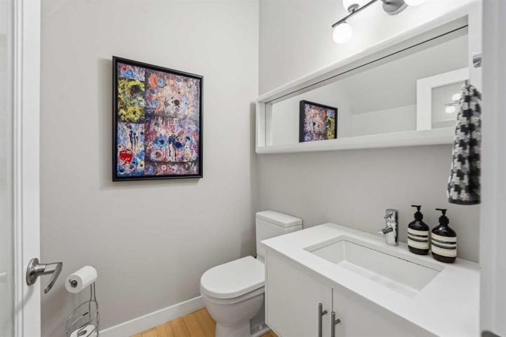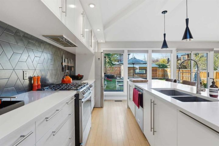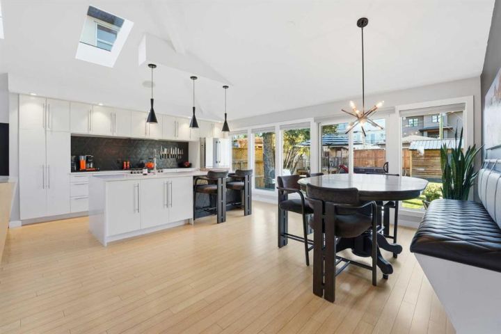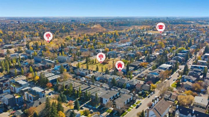 Perfectly positioned across from Kiwanis Park in Altadore, this fully renovated vaulted bungalow pairs modern design with everyday comfort. The striking curb appeal begins with a modern façade, low-maintenance landscaping and a welcoming front patio shaded by mature evergreens. Inside, soaring vaulted ceilings and sunny skylights create a bright, airy living room anchored by a gas fireplace surrounded by clever built-ins and shelving. Oversized windows capture leafy park views, while built-in speakers add ambience for relaxing or entertaining. The chef’s kitchen impresses with sleek full-height cabinetry, a designer tile backsplash, gas stove, stainless steel appliances and a waterfall-edge island perfect for casual dining or conversation. A wall of glass frames the backyard and floods the space with natural light, connecting seamlessly to the adjacent dining area where patio sliders open to the west-facing deck for effortless indoor/outdoor living. The main level continues with a showstopping creative studio featuring exposed wood beams, custom lighting and generous workspace ideal for design, art or a home office. A comfortable guest bedroom enjoys park views, complemented by a stylish powder room. Downstairs, the family-friendly layout continues with a large recreation room designed for movie and game nights. The spacious primary retreat features a built-in closet system and a luxurious ensuite with dual sinks and an oversized rain shower. Two additional bedrooms, each with large windows, share a modern 4-piece bathroom. The beautifully finished laundry area adds thoughtful function with built-in storage and folding space. Outside, a massive west-facing yard invites outdoor enjoyment with a huge deck for barbeques, lounge areas for warm weather gatherings and plenty of grassy play space for kids and pets to play. Comfort is ensured year-round with central air conditioning, on-demand hot water, a high-efficiency furnace and a water softener. Set on a corner lot within walking distance to River Park, Sandy Beach, and the boutiques and cafés of Marda Loop, this home embodies the best of Altadore living, design-forward, functional and outstandingly located! Open house Sat/Sun 12-2.