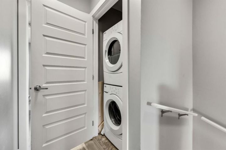 Dishwasher, Electric Stove, Microwave Hood Fan, Refrigerator, Washer/Dryer Stacked, Window Coverings