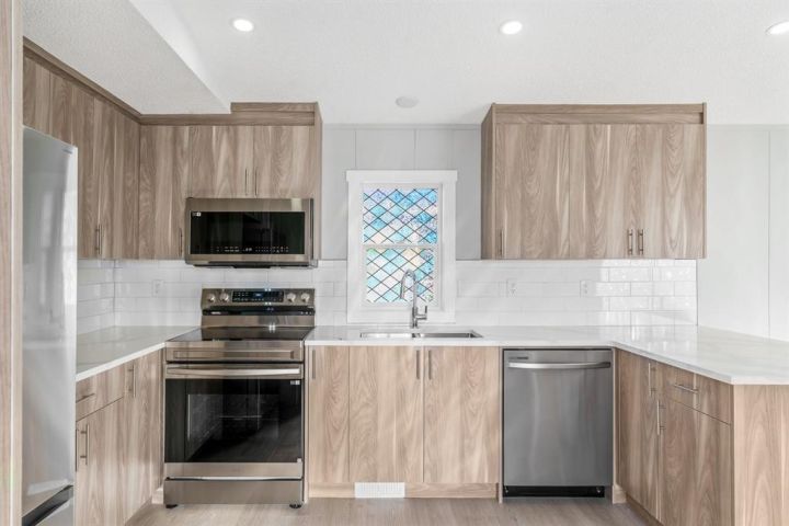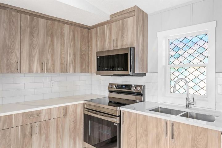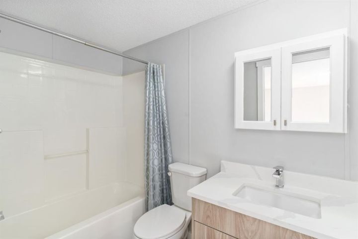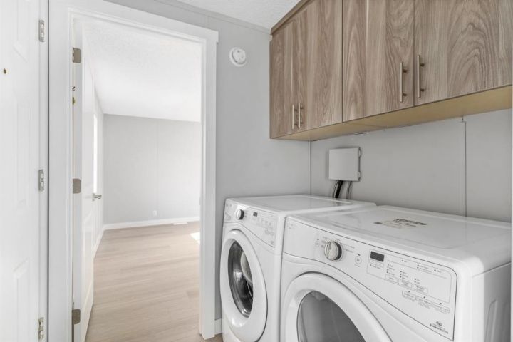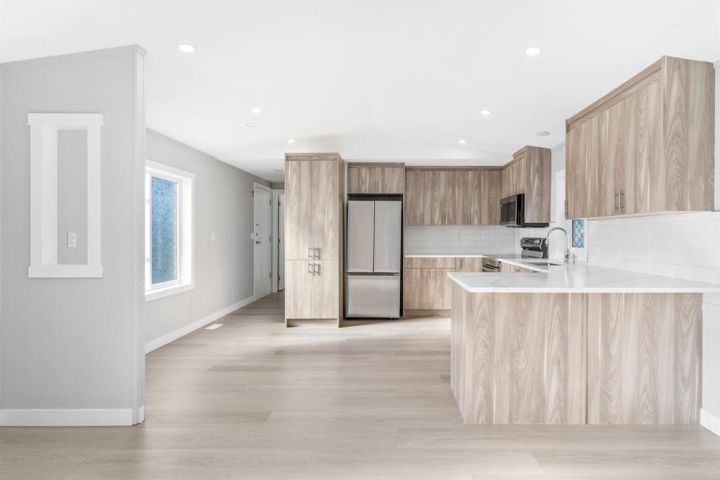 BEAUTIFULLY RENOVATED: 3 bedroom and 2 bathroom home - nearly 1200 sq.ft located in the sought after park of Chateau Estates. This includes BRAND NEW KITCHEN with gorgeous custom cupboards, QUARTZ countertops, beautiful backsplash and BRAND NEW STAINLESS STEEL APPLIANCES! *** Brand new Luxury Vinyl Flooring throughout the whole home***New lighting throughout*** Bathrooms have been update with new toiles and vanities. The whole home has just been professionally painted. Brand new interior doors and baseboards everywhere! This spacious home is perfect for a family or someone that is looking to downsize and simplify life. The property comes with two decks, a patio and a large SHED! Extremely low pad fees ($630/month)! You have go to come here to view this NOW! Won't last long!