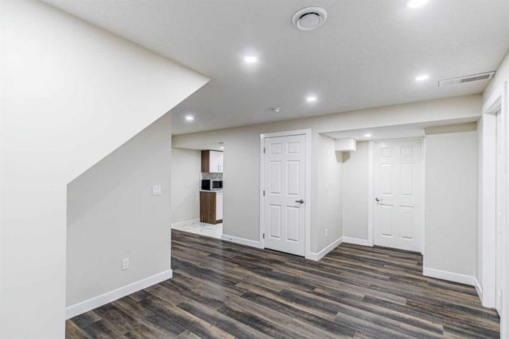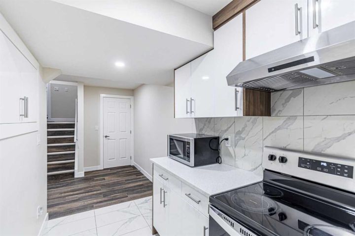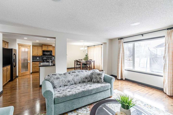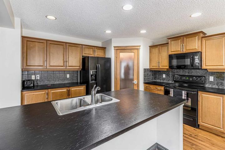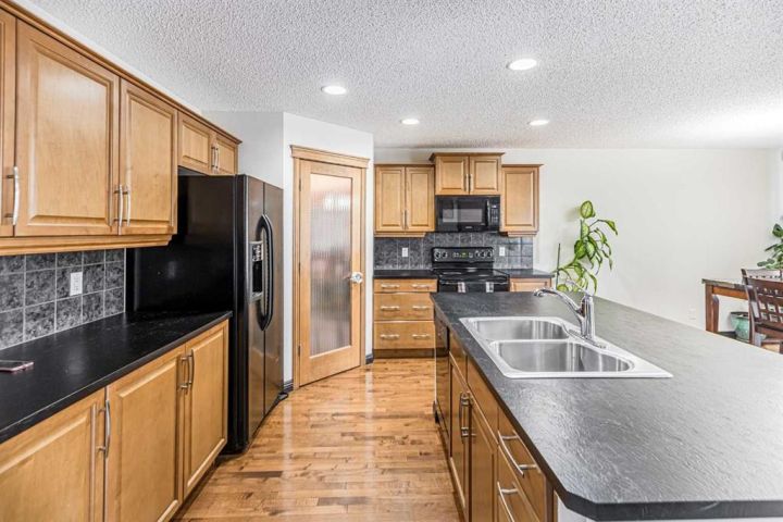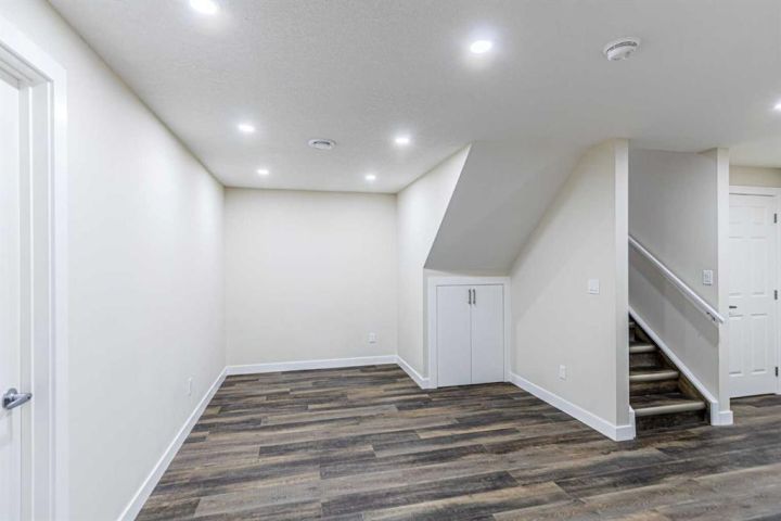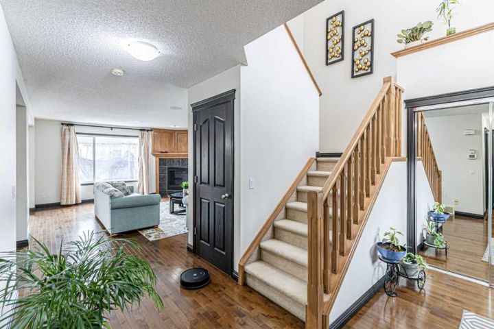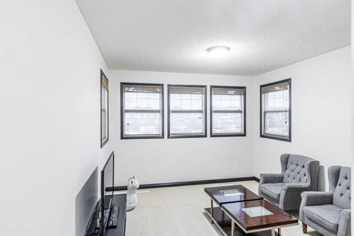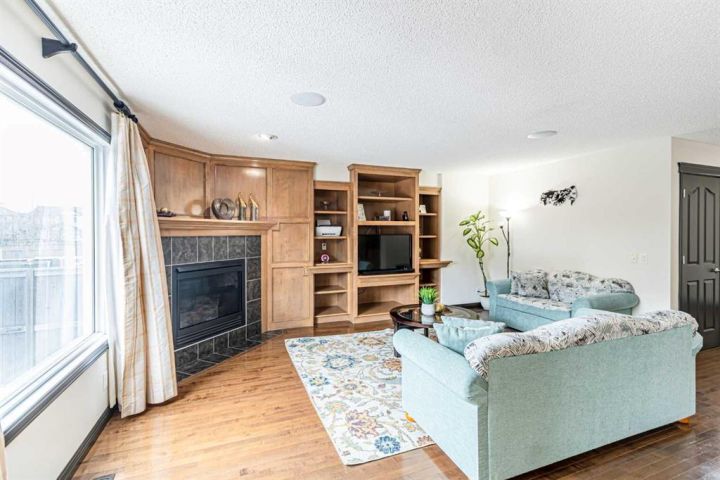 Welcome to this 5-bedroom, 3.5-bathroom home nestled in the desirable community of KING'S HEIGHTS . Designed for comfort and functionality, this property offers over 2800 sqft of beautifully finished living space (fully finished basement with separate side entrance) and a separate front service road. The open-concept main floor features a bright and inviting living area with custom shelving unit and a gas fireplace, complete with large windows that fill the space with natural light. The kitchen boasts with a large island, and a spacious pantry, ideal for everyday living and entertaining. Main floor completes with half bath and a laundry room. Upstairs, you’ll find three generously sized bedrooms, including a primary retreat with a walk-in closet and private ensuite. A full bath and a bonus room with high ceiling with lots of windows for plenty of natural light completes upper level. The fully developed basement includes two additional bedrooms, a full bathroom, separate laundry and a separate side entrance. Enjoy outdoor living in the fully landscaped backyard, perfect for summer barbecues and family gatherings. The attached double garage provides ample parking and storage. Located close to schools, parks, pathways, shopping, and major routes, this home offers the perfect balance of comfort, convenience, and community living. Don’t miss your chance to make this King’s Heights home yours!