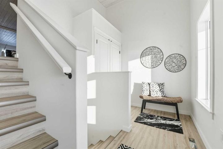 PROUDLY representing another gorgeous show home by WOLOWSKI DEVELOPMENTS INC. This winning floorplan features an OPEN CONCEPT, stunning WHITE KITCHEN with gorgeous white subway tile and stainless appliances (MICROWAVE HOOD FAN AND BUILT IN DISHWASHER). Off the kitchen leads to a spacious deck with NORTH EXPOSURE. A wall pantry, rough in for water/ice for your future fridge, and an EAT UP ISLAND. The new modern LINEAR electric fireplace in the living room features a beautiful feature wall and can be enjoyed from the kitchen and dining. WOLOWSKI homes pride themselves on their very desired whitewash pine ceilings with an attractive black beam adding a warm ambiance. There are three bedrooms on the main floor, a 4-piece bathroom, and the primary featuring its own private 4-piece bath and WALK IN CLOSET. LED LIGHTING throughout making this home affordable and low maintenance. A LUXURY VINYL PLANK in a grey/beige (GREIGE) warm colors, waterproof and durable make a perfect choice for the main floor finishes. (Pet and kid friendly) The WALKOUT basement has a roughed in 4-piece bath that is fully plumbed and wired, a roughed in floorplan with 2 more bedrooms and a large recreation room, a commercial grade hot water tank, sump pump and a high efficiency furnace. The builder will negotiate sod, fence, and basement completion. (ICF) insulated concrete foundation is more costly to build, but provides strength, energy efficiency, and is the best way to provide thermal insulation to the home. It is more fire-resistant, soundproof, and resists water and moisture. Wolowski also is one of the few builders that still ROUGH IN under floor heat. Move right in with piece of mind knowing you have a 1 year builder warranty, and a 10 year progressive new home warranty.