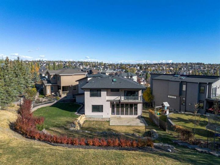 Perfectly situated in a quite cul-de sac in the exclusive community of Springbank Hill, is this magnificent 4700 sq.ft of opulent developed living space on a massive lot. This home encapsulates every detail with 6 bedrooms, 3.5 baths, 2 fireplaces and 9'ceilings on all floors. The main floor offers hardwood throughout, a front office/reading room, vaulted ceilings in the entry way and a formal dining area with custom chandelier. South West facing windows allow boundless natural light in the living room and a fireplace adorned with stylish tile work creates a warm ambiance while entertaining. The chef’s kitchen is outfitted with expansive quartz counter tops, custom cabinets and top of the line stainless Miele cooktops (Induction & gas) and dishwasher, Dacor built in oven and a new oversized LG fridge. The kitchen is thoughtfully designed to include an "Island to table" design and a massive walk-thru pantry. An oversized mudroom provides more closet storage for keeping clutter discrete and the a charming 2-piece bathroom finishes the main floor beautifully. Love sunlight? 2 Skylights keep the second floor bright and airy! The oversized primary bedroom is accented with a 2-way fireplace, large balcony overlooking the estate size yard, a spa ensuite including a jetted soaker tub, sleek shower and a spacious walk-in closet with a secret entry way to the baby's room. The 3rd and 4th bedrooms are well located opposite of the primary for further privacy and comfort. A 5-piece bathroom, laundry room and an oversized bonus room complete the upper floor .  The lower level (roughed in in-floor heating) is just as special as the rest of the home which includes 2 bedrooms, 4-piece bathroom, wet bar, an enormous entertainment/ games room and private entry way to the garage. Retreat to your back yard oasis and you will notice the intricate custom stonework and professional landscaping equipped with irrigation and a playground at the top of the hill. Additional features include central air conditioning for year-round comfort, CAT 5 pre-wire throughout and a triple-car tandem garage that offers ample parking and storage. Well situated with easy access to paths, public and private schools (including Rundle, Webber), shopping, restaurants, and transit. Easy access to city core and direct access to the mountains, this is a rare opportunity to own luxury in one of Calgary’s most desirable communities. Do not miss this opportunity!