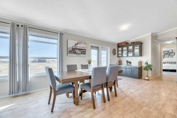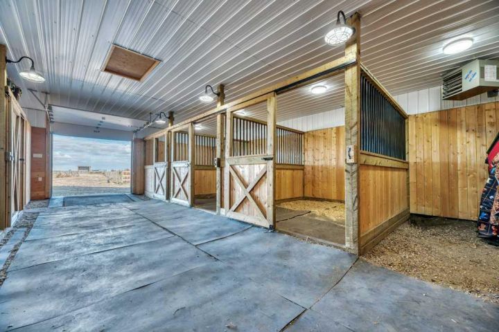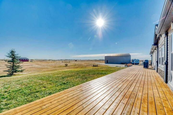 Home Sweet Home 2016 Triple M Modular Show Home – Kitchen Edition 1,672 sq ft | 3 Bedrooms | 2 Bathrooms Thoughtfully designed layout with bright open-concept kitchen, dining, and living areas Enjoy breathtaking sunrises from the large full east-facing front deck Unwind with spectacular mountain-view sunsets from the west-facing back deck 1150-gallon septic tank with open discharge to sprinkler system Fully Equipped Shop – Built 2017 32’ x 52’ x 16’ with overhead doors and mezzanine, large enough for your RV, vehicles, tractors, toys and more (gravel Floor) 220V power outlet (ideal for EV charging or running a welder) Gas line and water line already installed Equestrian Facilities – Built for Business or Pleasure Engineered commercial-grade barn (built 2017) Heated 36’ x 36’ x 12’ barn 4 stalls, wash bay, oversized tack locker, heated bathroom, and feed room Competition-sized outdoor riding arena Round pen for training 3 large paddocks with premium German wireless fencing & sturdy wood plank borders 8-acre pasture & 10-acre pasture with oversized horse shelters Imported Bar Bar A automatic waterer, 1 hydrant, and hitching post Additional Highlights Quiet and peaceful location, perfect for escaping the city hustle Ideal setup for boarding, training, or a home-based equestrian business High-end infrastructure already in place – just bring your horses! This is your dream rural retreat! 29.8-acre fenced and cross-fenced property offers peaceful country living just minutes from the town of Strathmore. Whether you’re an equestrian enthusiast, hobby farmer, or simply looking for tranquility with convenience, this stunning acreage has it all. Plus 2000 annual lease for access to well. Don't wait- book your private tour!