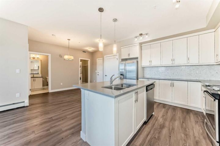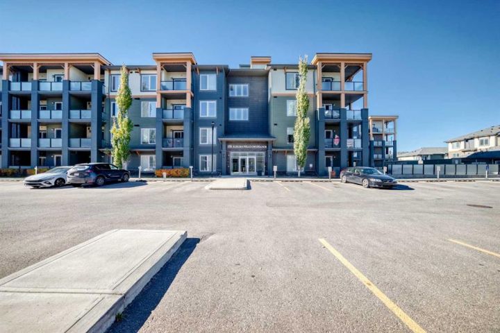 Welcome to this stunning and impeccably designed 2-bedroom, 2-bathroom condo in the heart of Auburn Bay — where modern elegance meets effortless comfort. Offering 832 sq. ft. of beautifully crafted living space, this sun-filled home features an open-concept layout with large windows and a west-facing balcony capturing breathtaking Rocky Mountain views. The gourmet kitchen boasts sleek quartz countertops, contemporary cabinetry, and abundant storage, perfect for the inspired home chef. The spacious primary suite includes a luxurious walk-in closet with built-in organizers and a private ensuite, while the second bedroom offers versatility for guests or a stylish home office. Enjoy the convenience of in-suite laundry, year-round comfort with air conditioning, and secure titled underground parking. As part of the vibrant Auburn Bay community, residents enjoy exclusive lake access with year-round activities such as swimming, paddleboarding, fishing, and skating, plus first-class amenities including recreation centres, tennis courts, a fitness facility, and more. Ideally located close to premier shopping, dining, schools, and parks — this extraordinary home offers the perfect blend of lifestyle, luxury, and location.