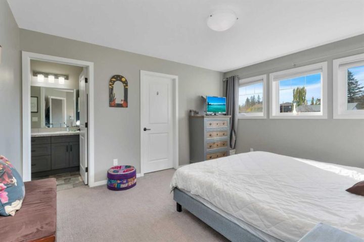 This bright and thoughtfully designed 2-storey home offers over 2,190 sq ft of total finished living space, including a fully developed basement, and is ideally located in one of Sylvan Lake’s most charming and established neighborhoods. Rarely does a newer-built home come available in this mature, tree-lined area known for its larger lots and unbeatable walkability. Just a short walk brings you to the lakefront, beach, downtown shops, schools, and restaurants—everything Sylvan Lake has to offer is practically at your doorstep. Inside, the open-concept main floor is enhanced by soaring 9-foot ceilings, creating an airy and spacious feel from the moment you enter. You're welcomed with a generous front foyer, a beautifully appointed kitchen with a large island, stainless steel appliances, and plenty of storage. The living and dining areas are bright and inviting—perfect for entertaining or cozy evenings at home. A convenient 2pc bathroom and mudroom off the garage complete the main level. Upstairs, the large primary suite features a walk-in closet and private ensuite. Two additional bedrooms and a full 4pc bath provide flexible space for family, guests, or a home office. The fully finished basement adds even more value with a generous rec room, fourth bedroom, 3pc bathroom, laundry area, and utility/storage space. The backyard is a true highlight—a finished outdoor space designed for both comfort and functionality. With multi-tiered decking, a hot tub, firepit, and thoughtfully placed raised garden planters for summer vegetables or flowers, it’s perfect for both entertaining and quiet moments. The east-to-west exposure brings morning light and evening sun, and thanks to the generous lot size, there’s plenty of parking in the rear, in addition to the attached front-drive garage. With its ideal location, 9-foot ceilings, well-designed layout, and beautifully finished yard, this home truly delivers the best of both worlds—modern living in a well-loved, walkable community. Bonus: this home has been professionally pre-inspected for your peace of mind. Move in with confidence knowing it’s been thoroughly reviewed and well cared for.