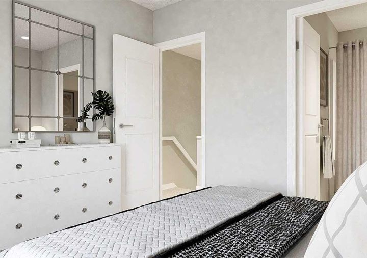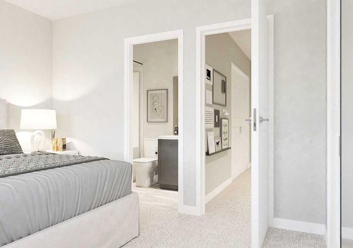 THERE’S A REASON ALPINE PARK IS GETTING TALKED ABOUT—AND IT’S NOT JUST THE ARCHITECTURE OR THE NEW URBAN VILLAGE VIBE. It’s the way this southwest Calgary neighbourhood brings together community, style, and walkability in a way that actually works. And if you’ve been waiting for the right foothold in this forward-thinking pocket, the Jasmine model at 303, 437 Alpine Avenue SW might be the one. This brand-new, THREE-STOREY TOWNHOME from Homes by Avi delivers 1,285 SQ FT of well-planned living space that feels both functional and refined. The WEST-FACING FRONT ENTRY opens to a simple, practical ground floor—just a crisp foyer, garage access, and the stairs leading up to the heart of the home. A DOUBLE ATTACHED TANDEM GARAGE keeps vehicles secure and storage organized, perfect for bikes, gear, or that extra freezer every household eventually needs. Up one level, the OPEN-CONCEPT KITCHEN, LIVING, AND DINING AREA keeps sightlines open and routines flowing. The kitchen pairs QUARTZ COUNTERS with a CONTEMPORARY TILE BACKSPLASH, a PANTRY, and a SPACIOUS BREAKFAST BAR that turns into a hub for everything from first light espresso to late-night takeout. Just off the kitchen, an EAST-FACING BALCONY STRETCHES OVER 16 FEET WIDE—perfect for sunny breakfasts or evening dinners that feel quietly removed from the street below. On the top floor, thoughtful zoning keeps the two bedrooms separated for privacy. The primary bedroom includes a WALK-IN CLOSET and a sleek 3-PIECE ENSUITE, while the second bedroom also features a WALK-IN CLOSET with easy access to a full bath. A VERSATILE DEN adds space for a home office, Peloton, or nursery, and the LAUNDRY ROOM is right where it should be—upstairs. Finishes throughout feel deliberate and elevated, with LUXURY VINYL PLANK FLOORING and cohesive design details that tie the main living space together. Outside, the exterior mixes MODERN MATERIALS and architectural lines, giving the home that contemporary “new urban village” character the area is known for. Beyond the front door, the neighbourhood continues to grow into ONE OF CALGARY’S MOST DESIGN-SAVVY NEW COMMUNITIES—defined by its wide, tree-lined streets, connected green boulevards, and a future Village Centre bringing shops and energy to the core. POSSESSION AVAILABLE MID-NOVEMBER. Book your showing and see why this phase of Alpine Park has everyone talking. • PLEASE NOTE: Photos are virtual renderings – fit and finish may differ on completed spec.
